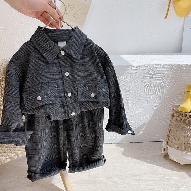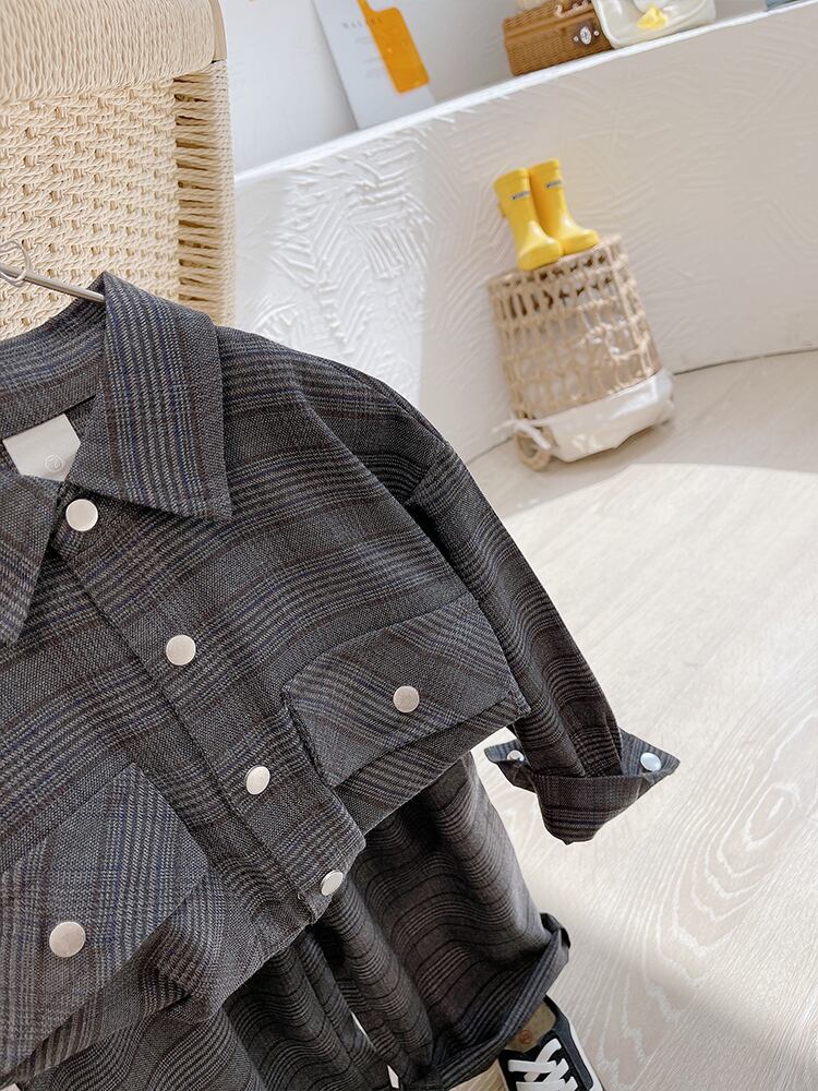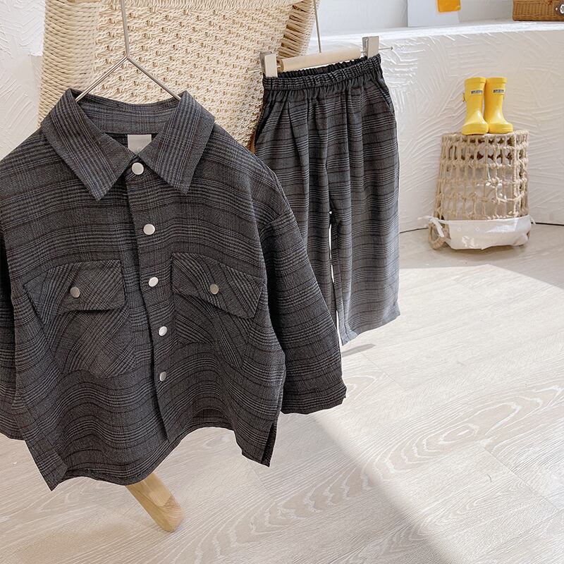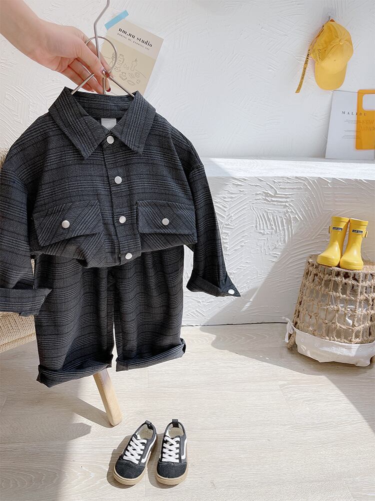 スタンダード格子柄シャツ スタイルパンツ スプリング レトロ 春物 mi0668309899603