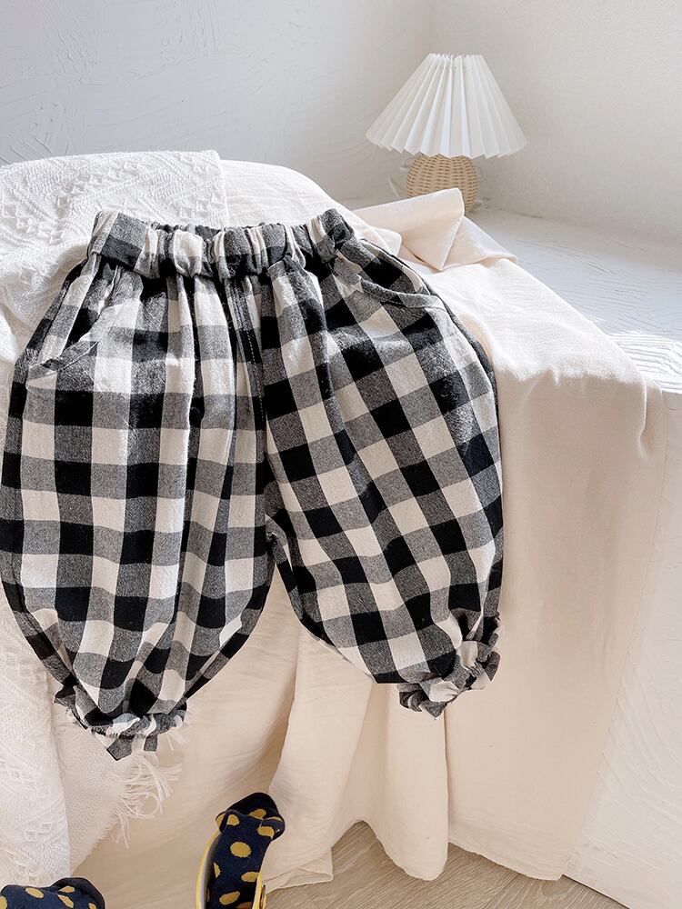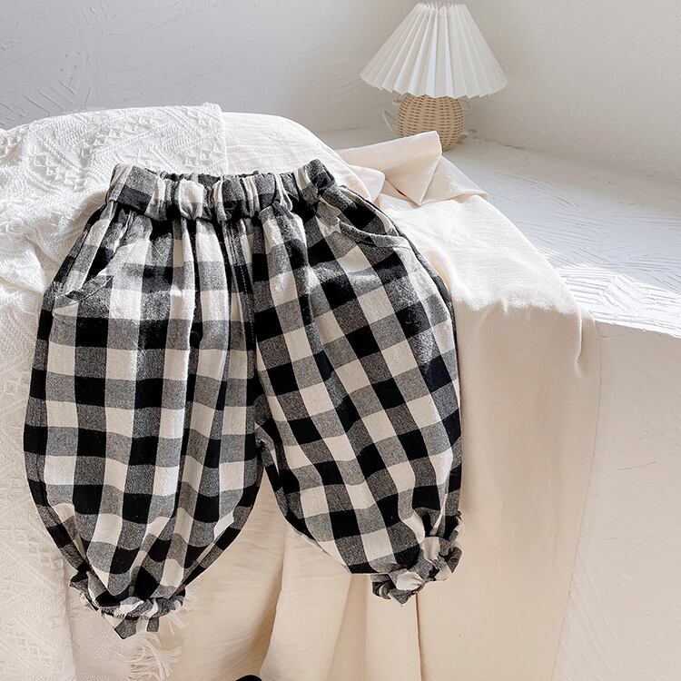 スプリング格子柄カジュアルパンツ バギースタイル コットン 春物 mi0695870296166