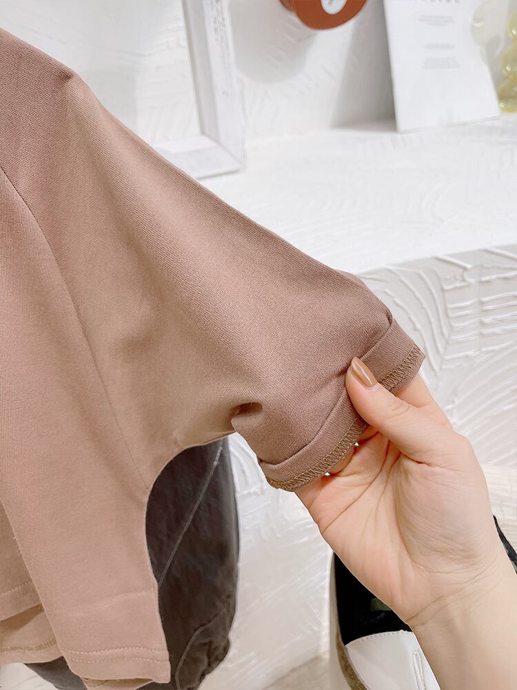 スプリングソリッド カラーラウンドネックシャツ ルーズスリーブトップス 春物 Oネック ソリッドカラー mi0683393934904