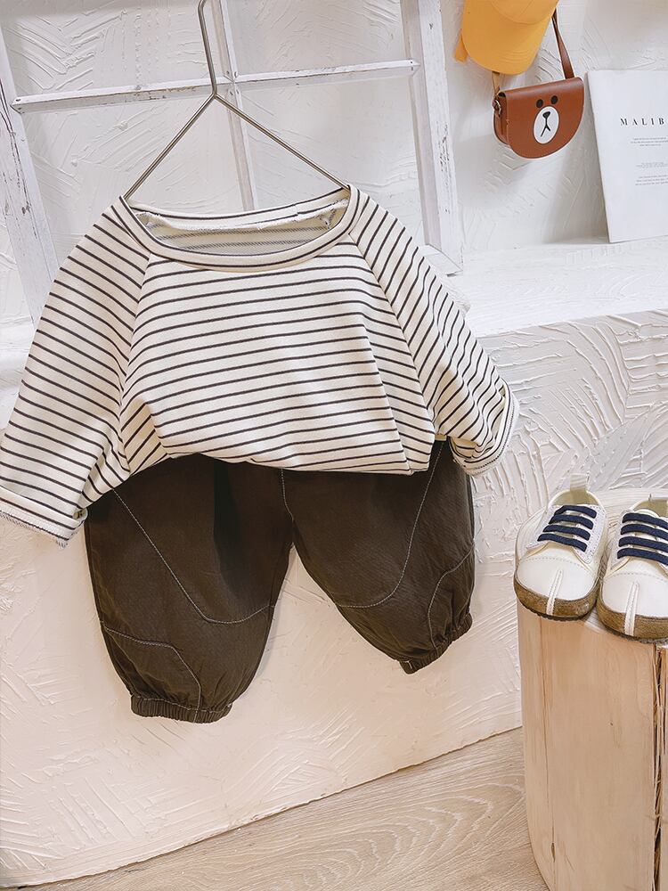 ストライプTシャツ シャツ スプリング薄手 ロング コットン 春物 mi0657878426250