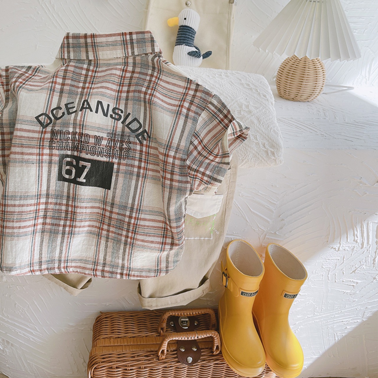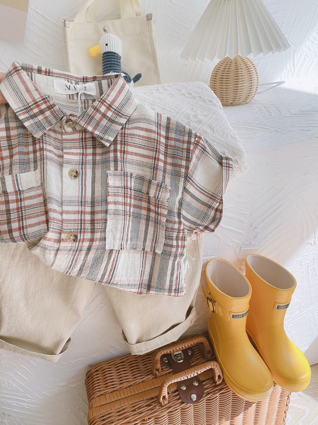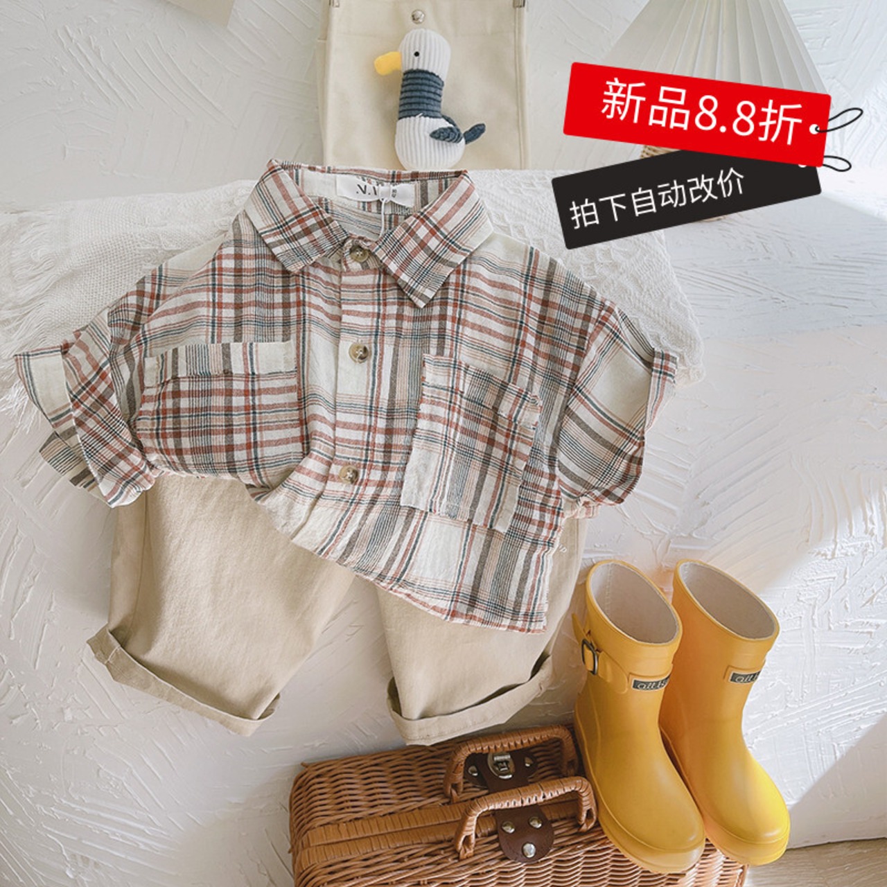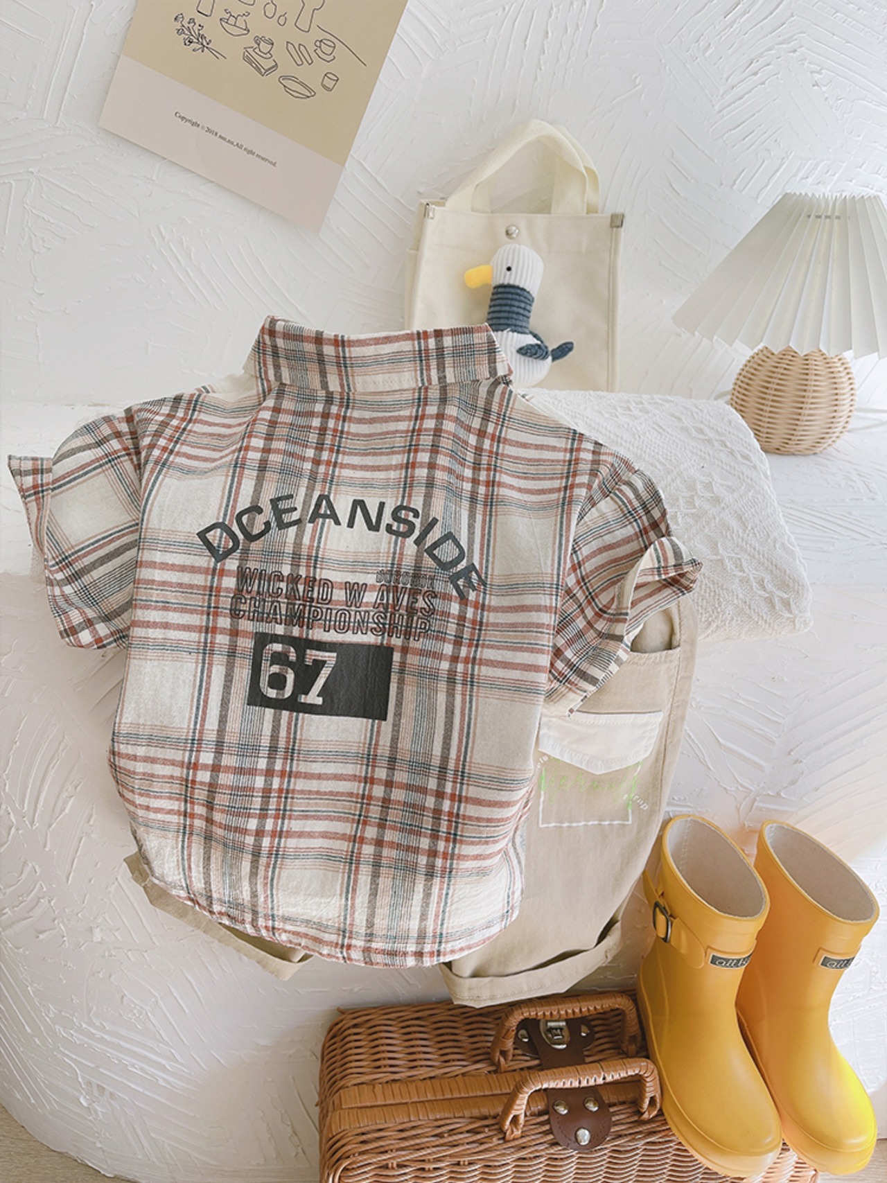 カジュアルルーズ格子柄シャツ スタンダードサマー薄手 コットン レトロ 夏物 mi0636904050454