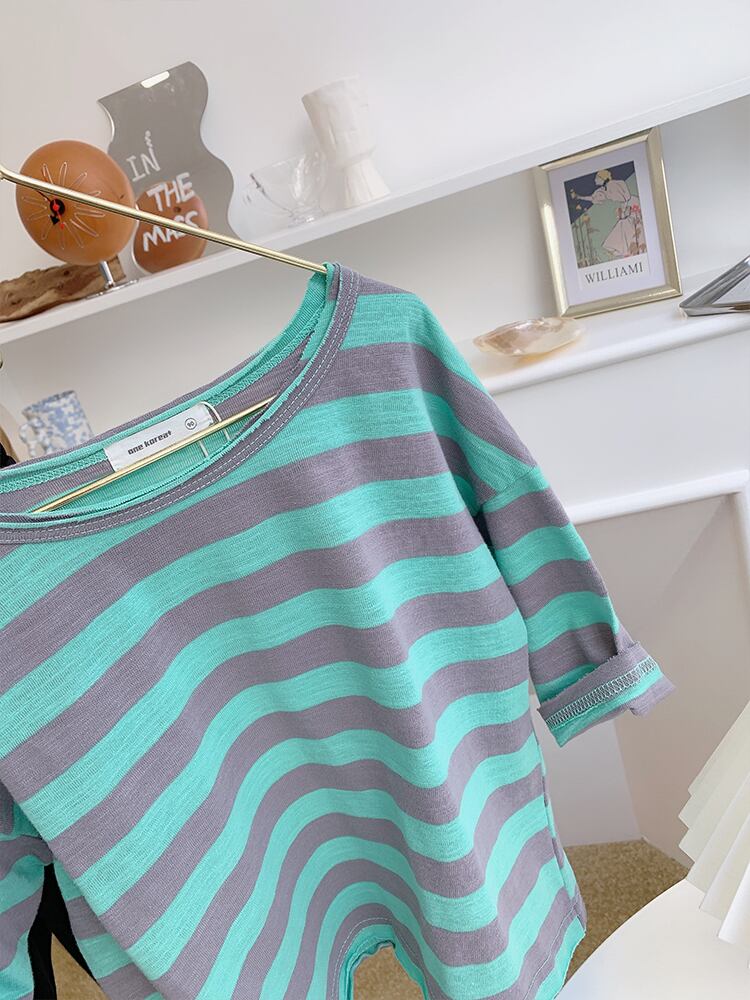 薄手ルーズストライプシャツ Tシャツ スプリング 春物 mi0691553059660