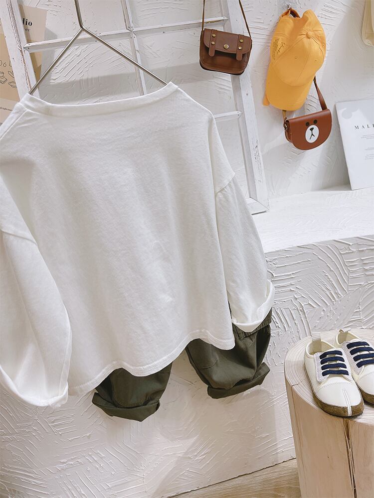 シャツ スプリングオータムTシャツ ホワイトルーズトップス ロング コットン 春物 秋物 mi064812908039