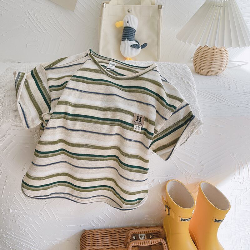 サマーストライプ薄手Tシャツ トップス コットン 夏物 ピュア mi0695855079999