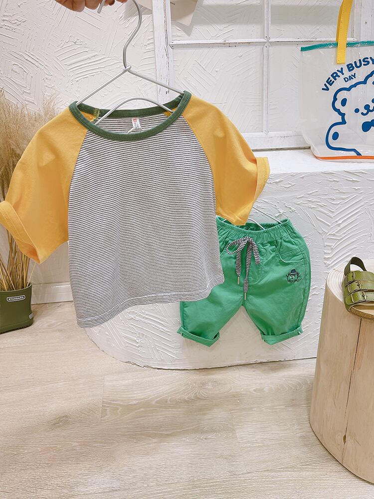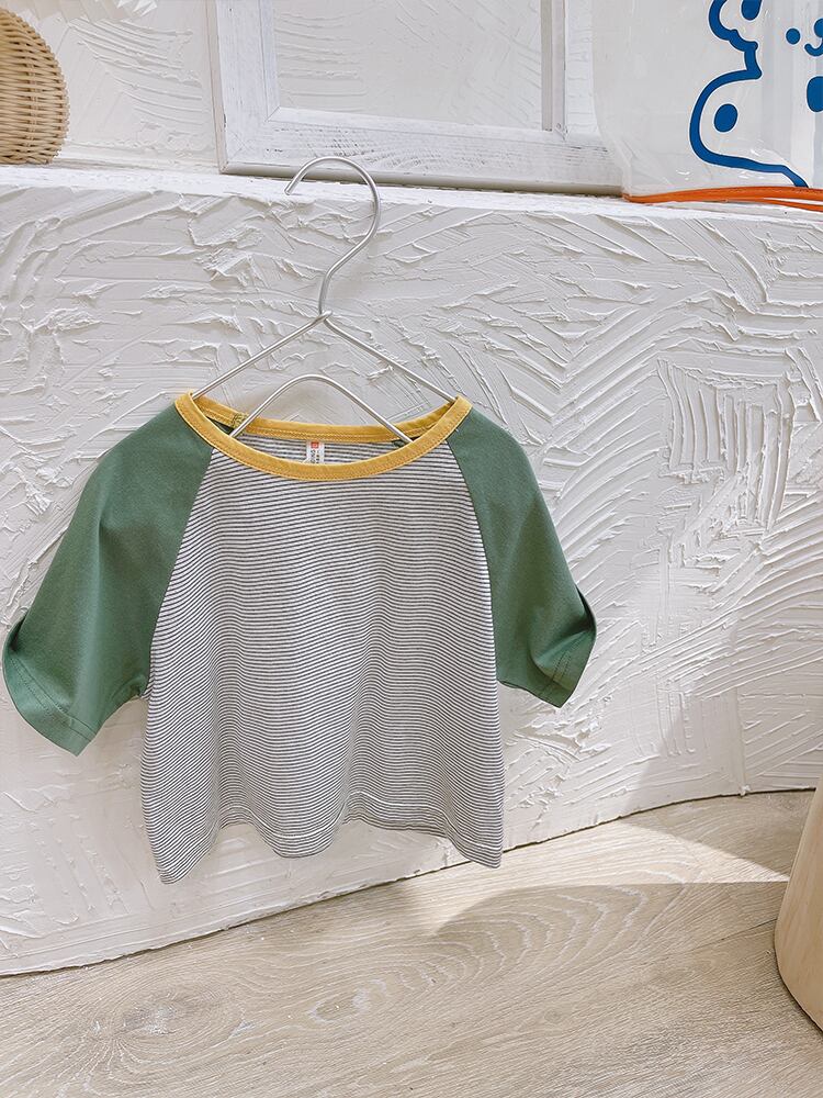 スリーブTシャツ ストライプラウンドネックトップス サマー薄手 コットン 夏物 Oネック mi0698392153547