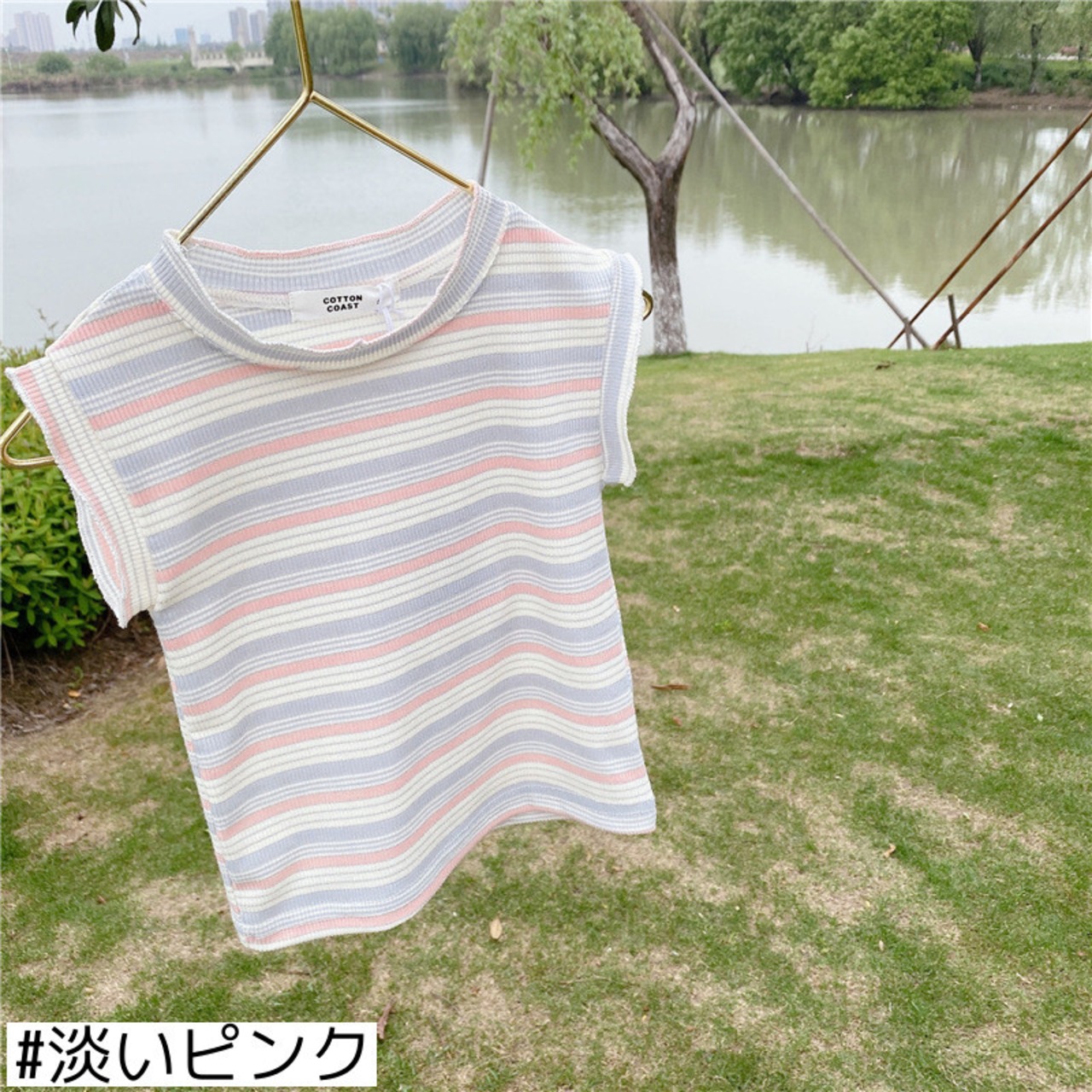ストライプサマーラウンドネックプルオーバー トップス 夏物 キッズ Oネック mi0640523911858