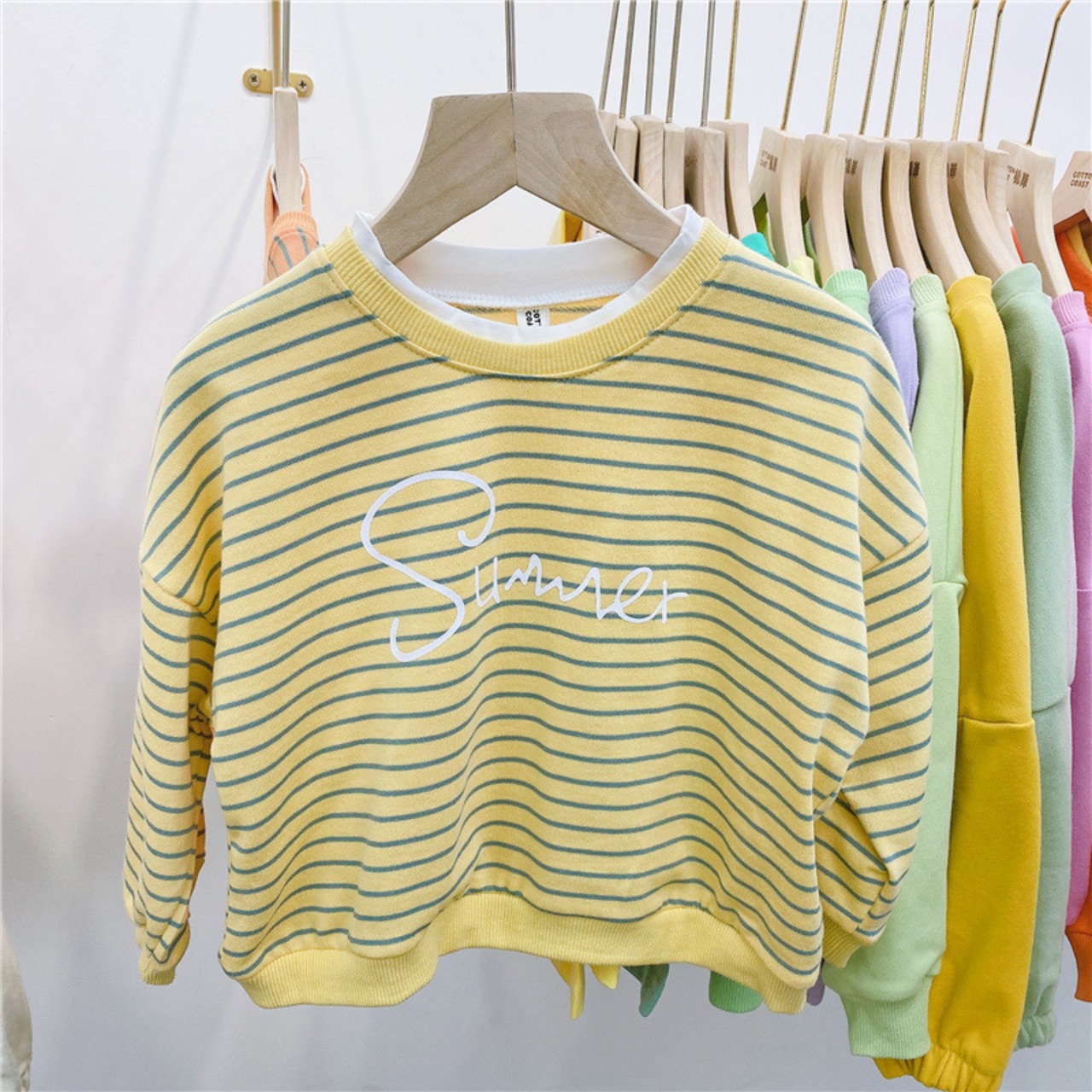 ラウンドネックセーター オータムストライプシャツ カジュアルトップス ロング 秋物 Oネック mi0614598266896