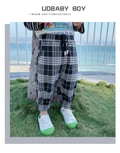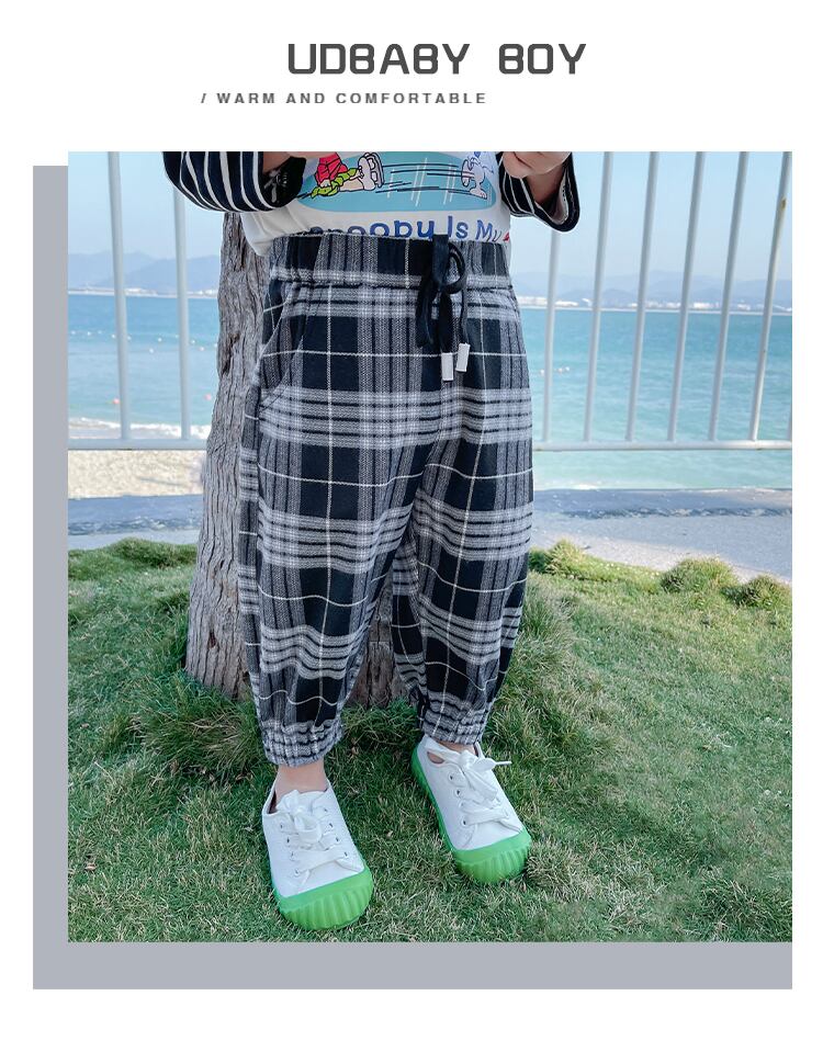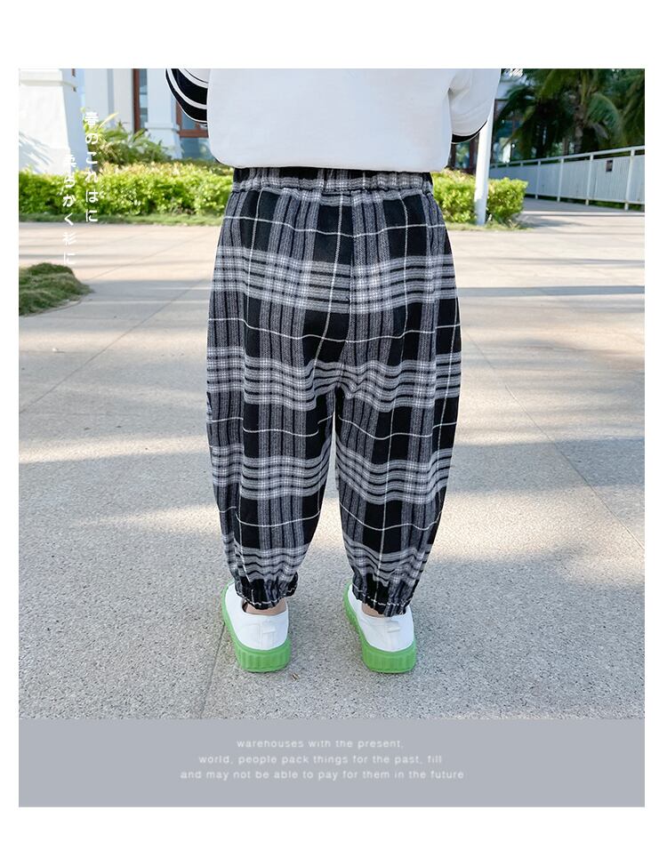 スプリング格子柄パンツ ロングルーズ 春物 キッズ mi0695169831865