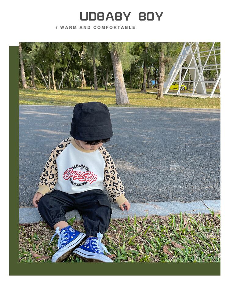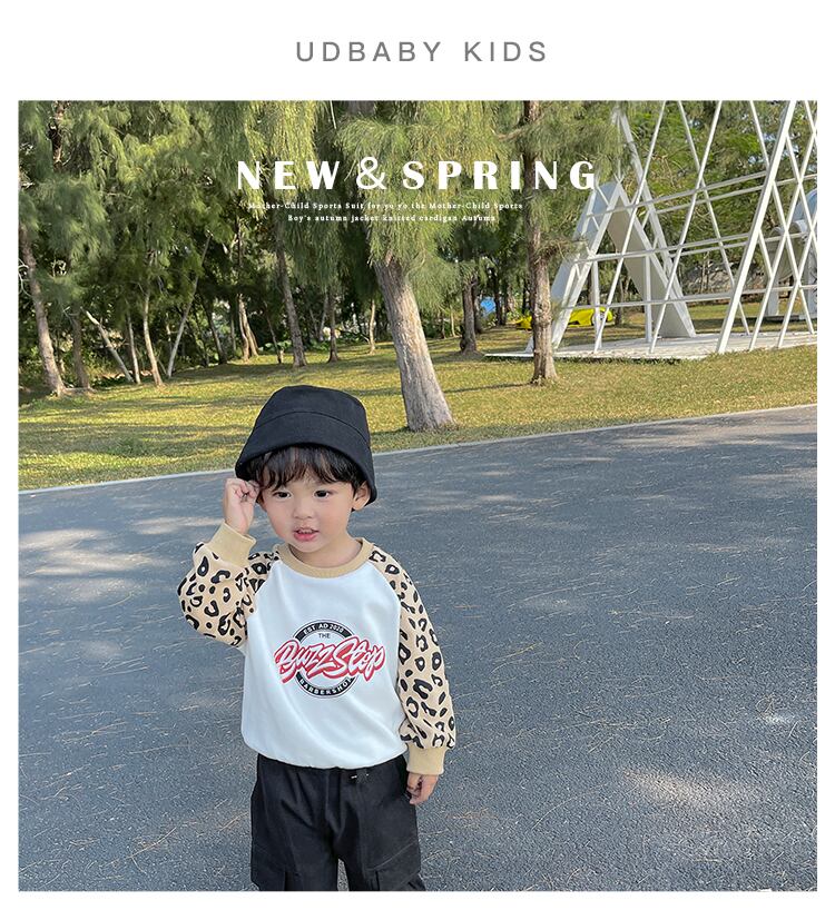 スプリングセーター レオパードプリント柄スリーブトップス 春物 mi0613971079660