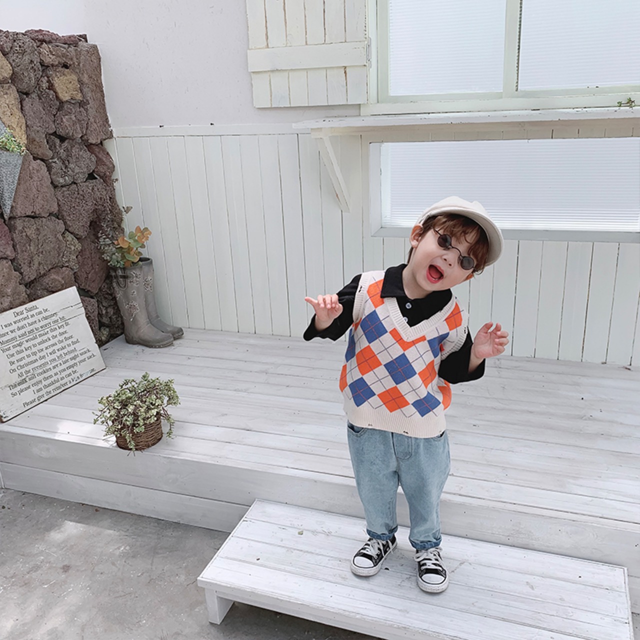 ニットスプリングスタイルカジュアルジャケット 格子柄セーター 春物 キッズ mi0649878888613