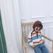 ストライプセーター スプリングラウンドネックシャツ 春物 Oネック mi0656101485762