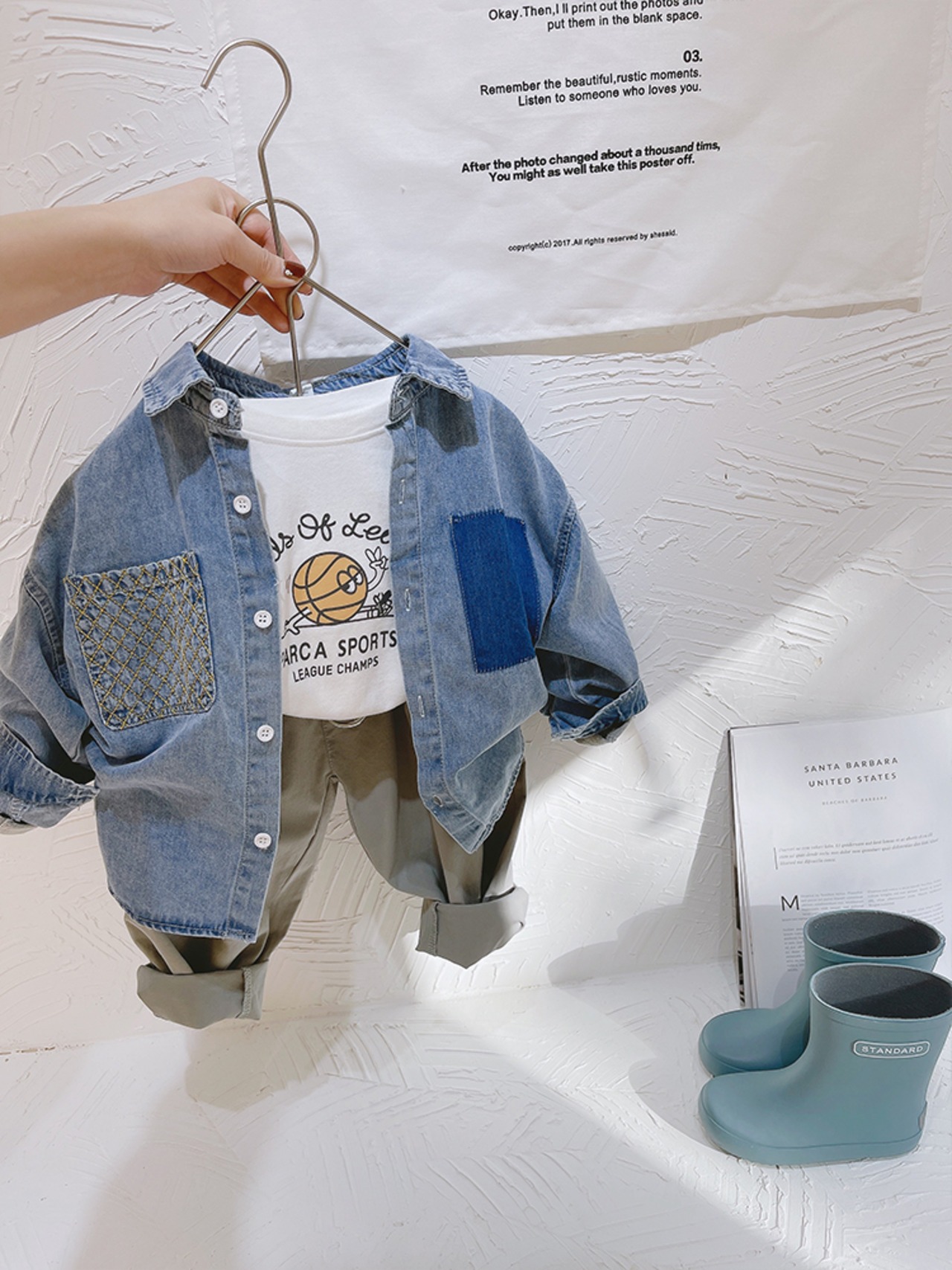 スタンダードシャツ カジュアルスタイルスプリングカーディガン レトロ 春物 キッズ mi0676073911011