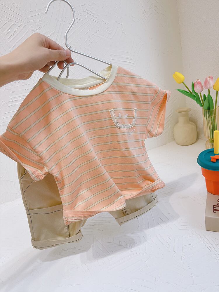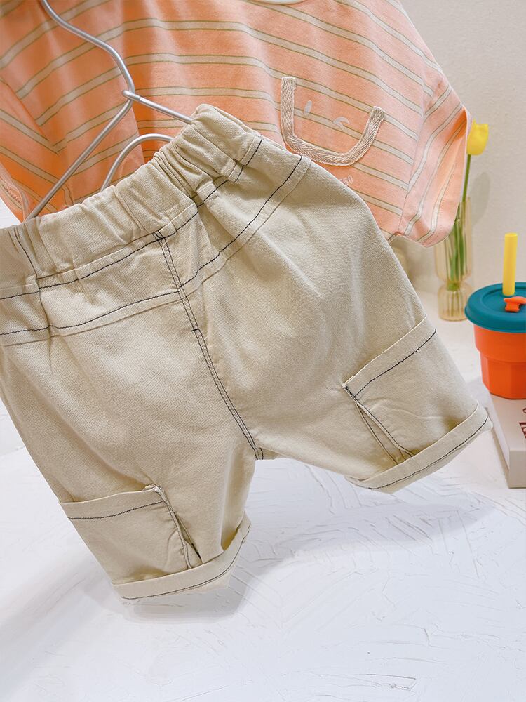 サマーオレンジストライプカジュアルオーバーオール ショーツ 夏物 ブルマー mi0646912295566