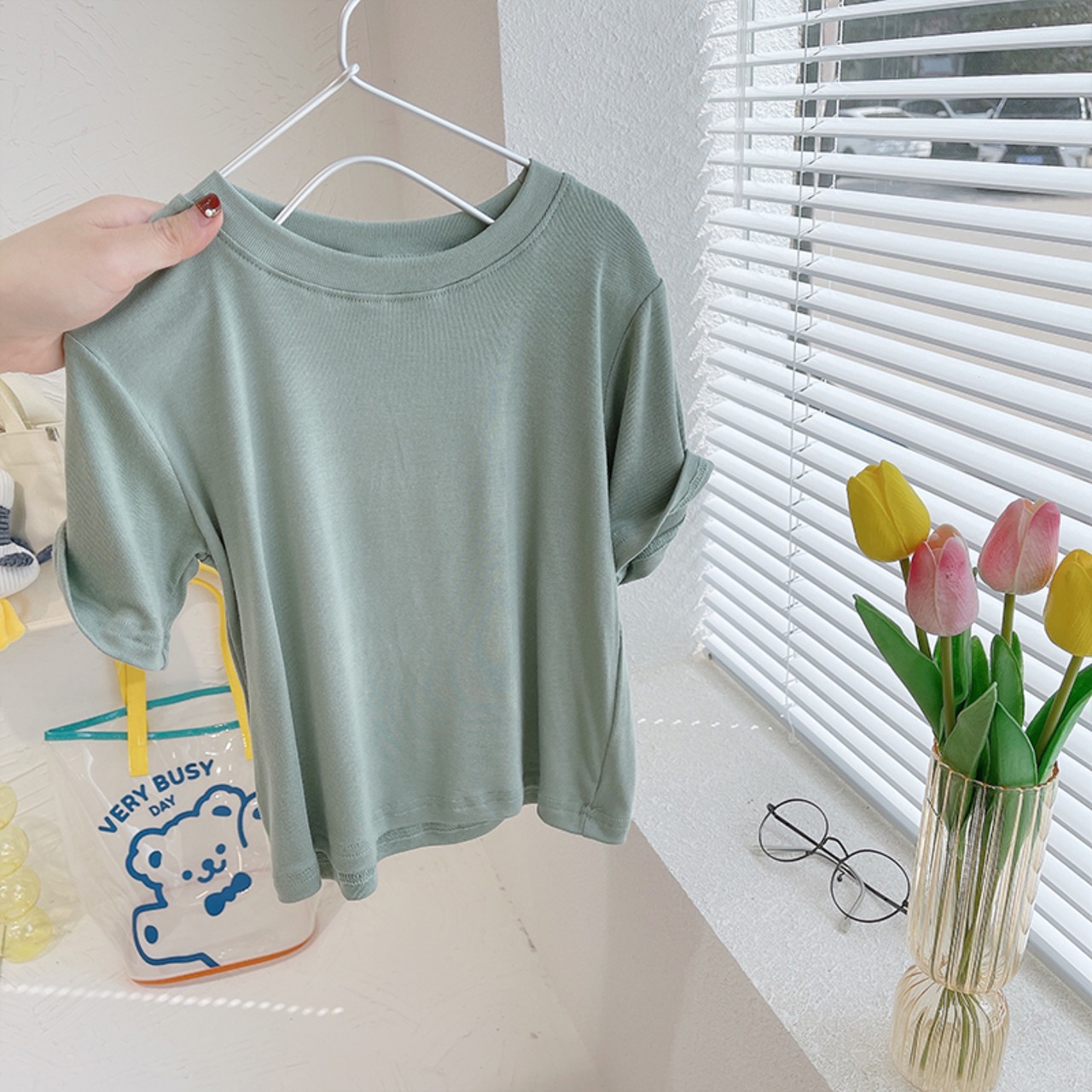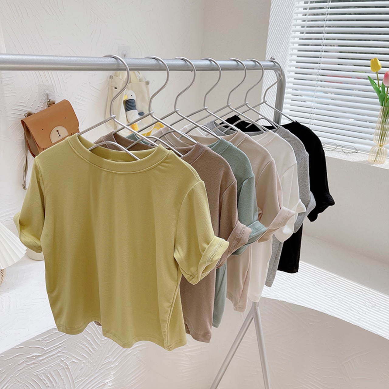 ラウンドネックソリッド カラーシャツ ルーズTシャツ トップス エラスティック 伸縮 Oネック ソリッドカラー mi0681980997613