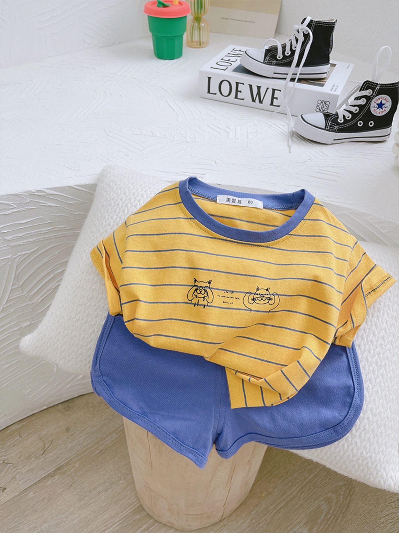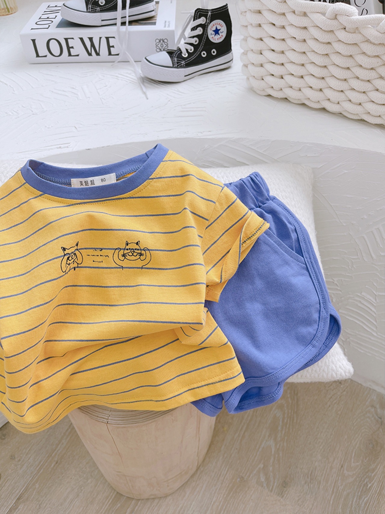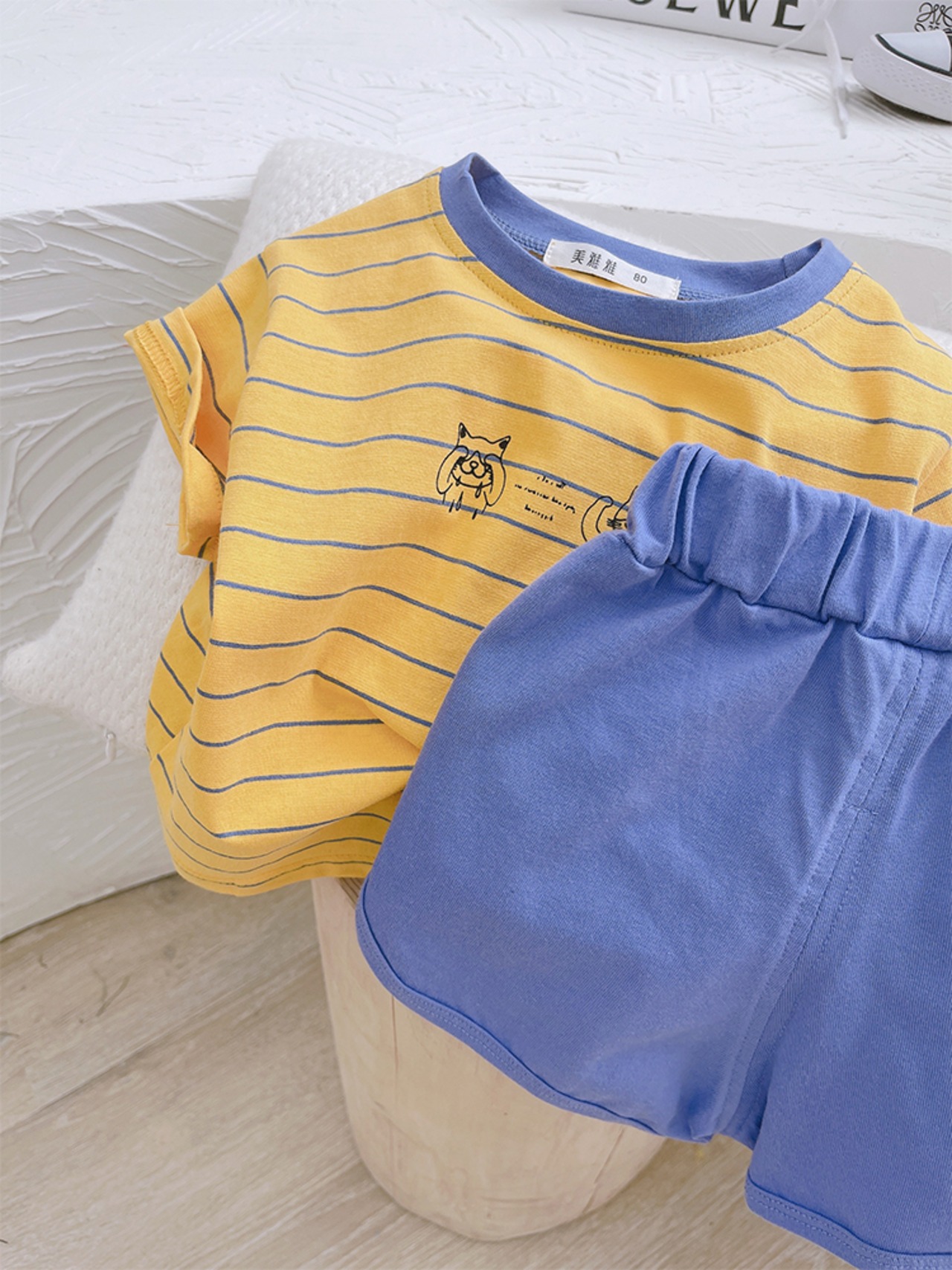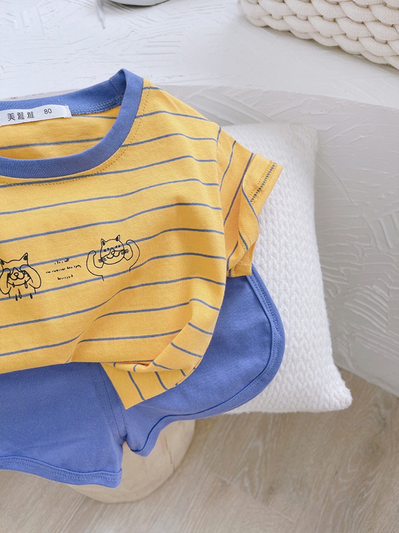 イエローストライプルーズTシャツ ショーツ サマー 夏物 ブルマー mi0659225292779