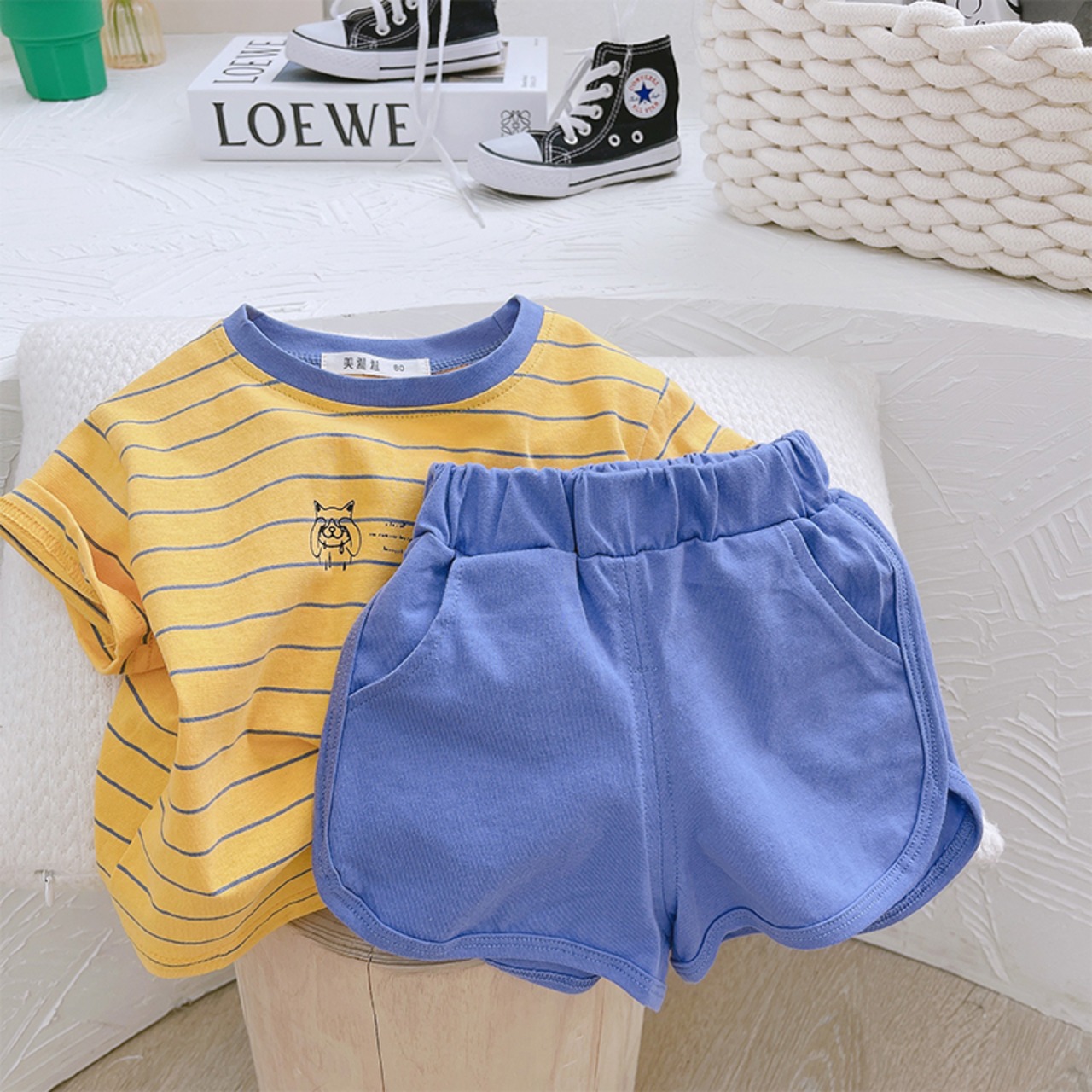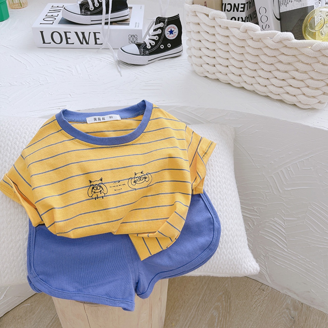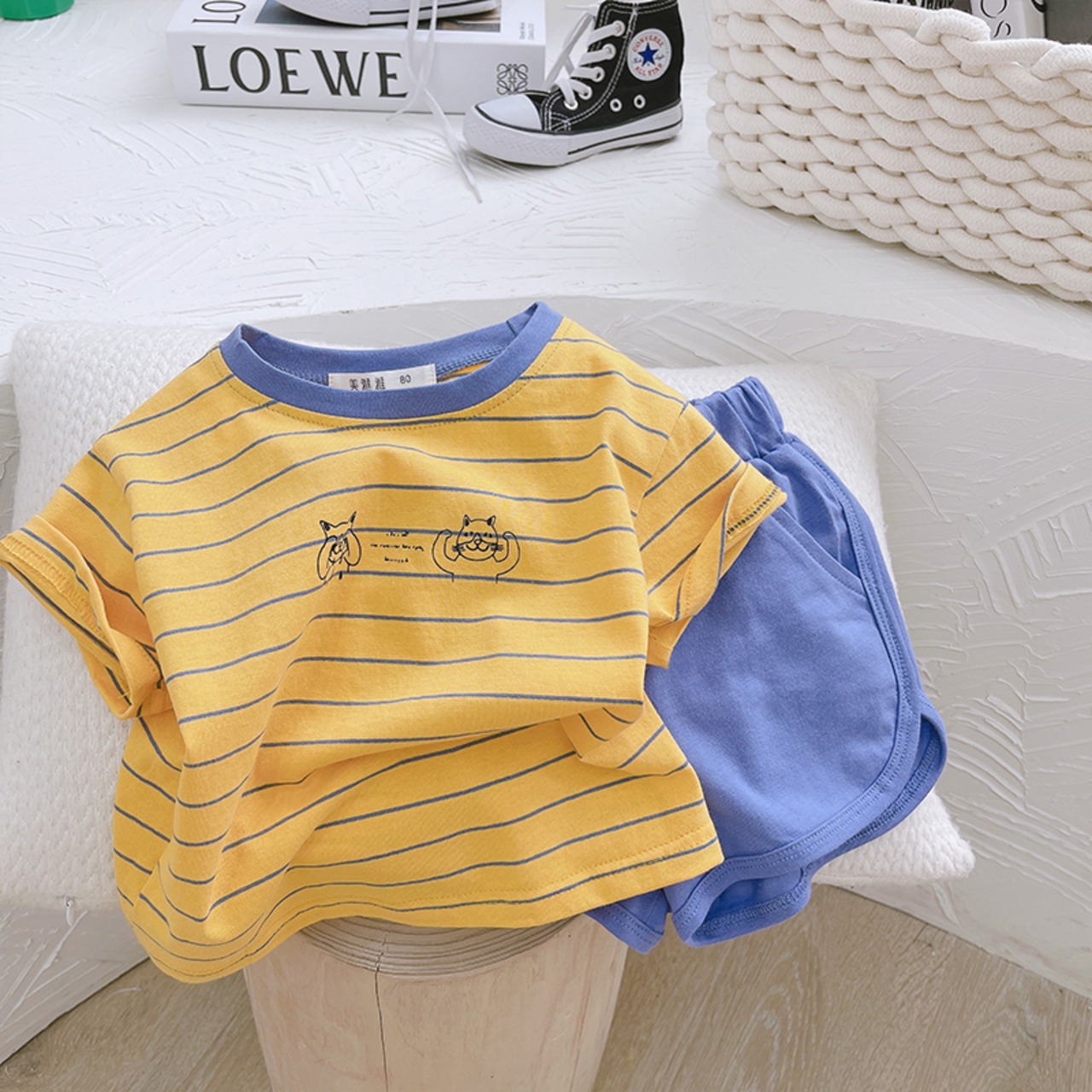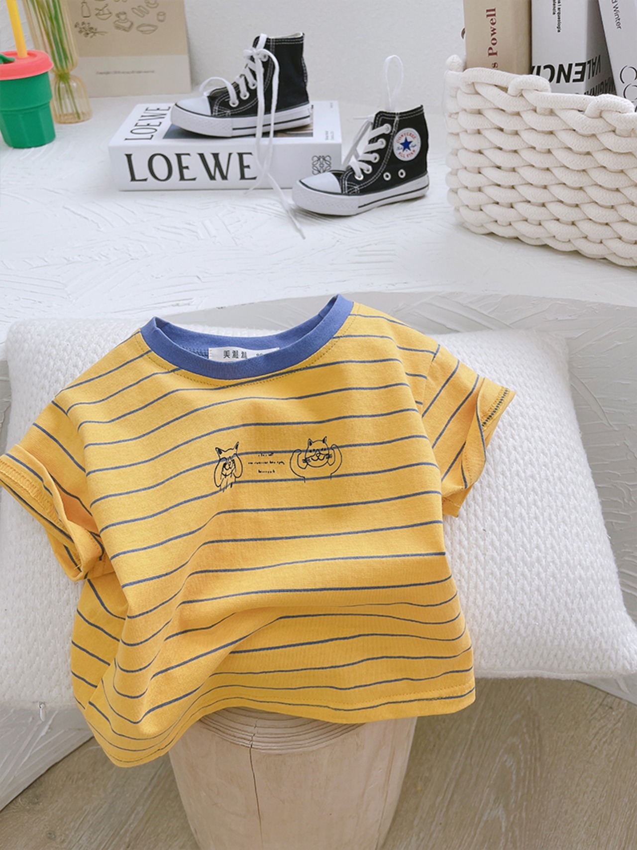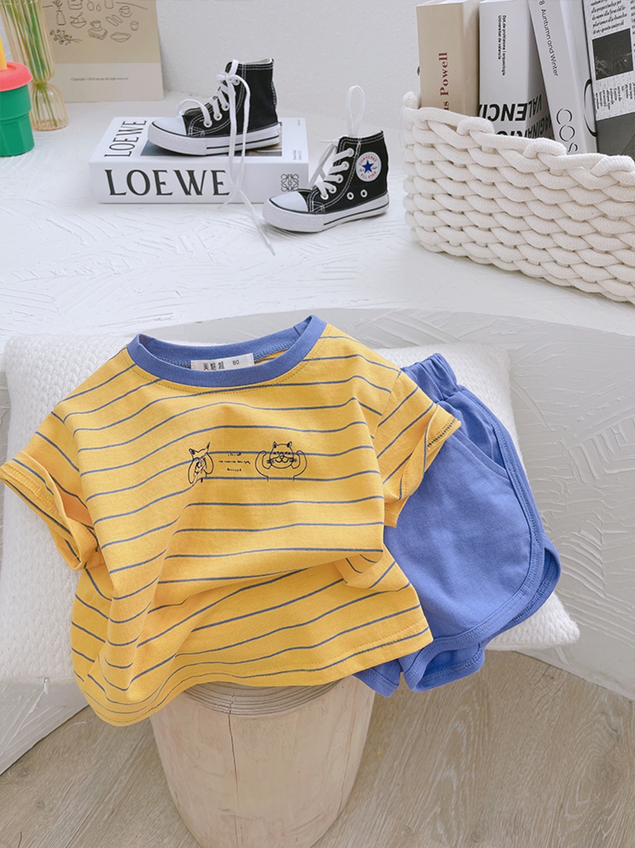 イエローストライプルーズTシャツ ショーツ サマー 夏物 ブルマー mi0659225292779