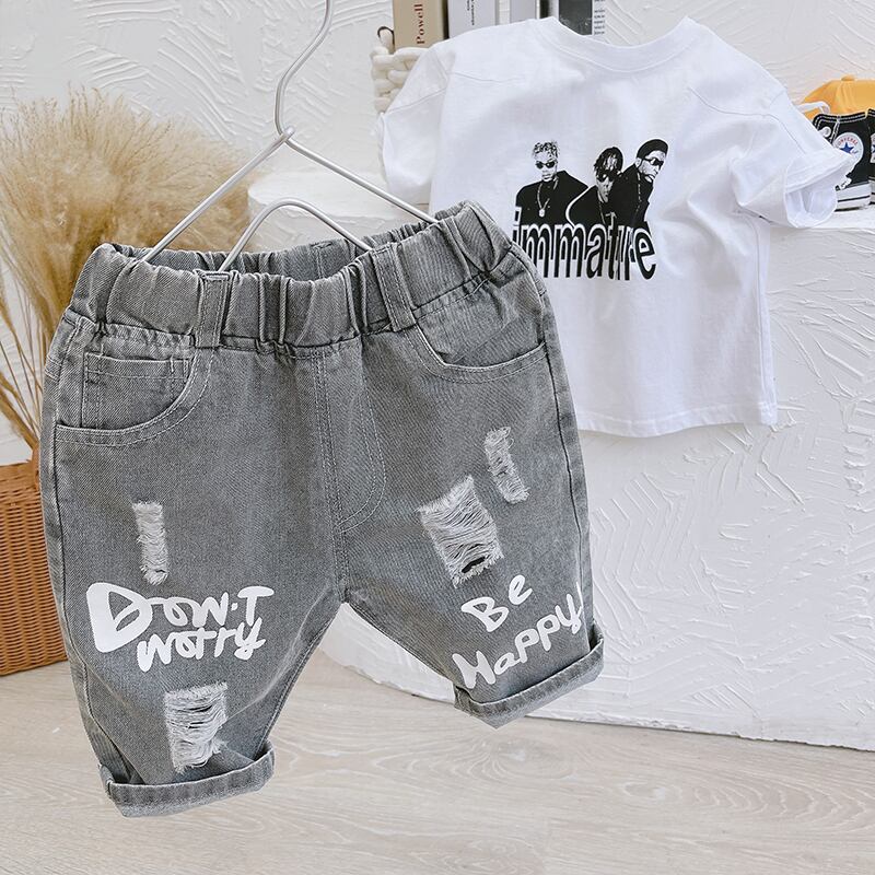 サマー薄手ジーンズ グレーパンツ プリント柄ストレッチウェスト エラスティック 伸縮 夏物 mi0698235743486