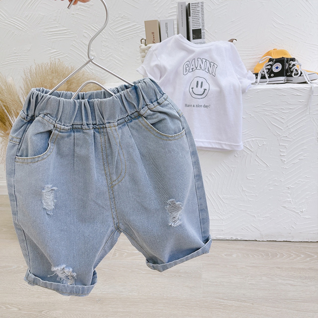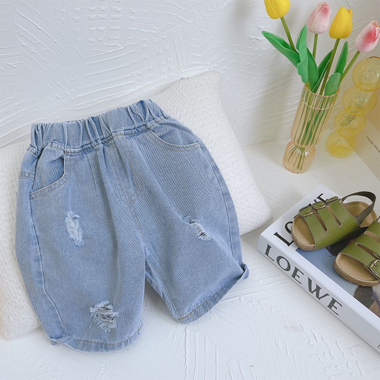 カラーサマージーンズ ブルーショーツ コットン 夏物 ブルマー mi0679007102818