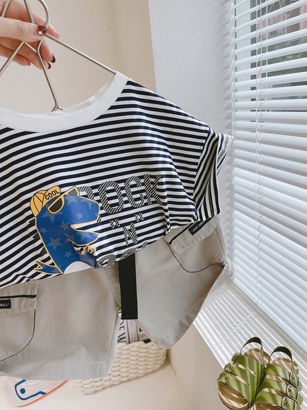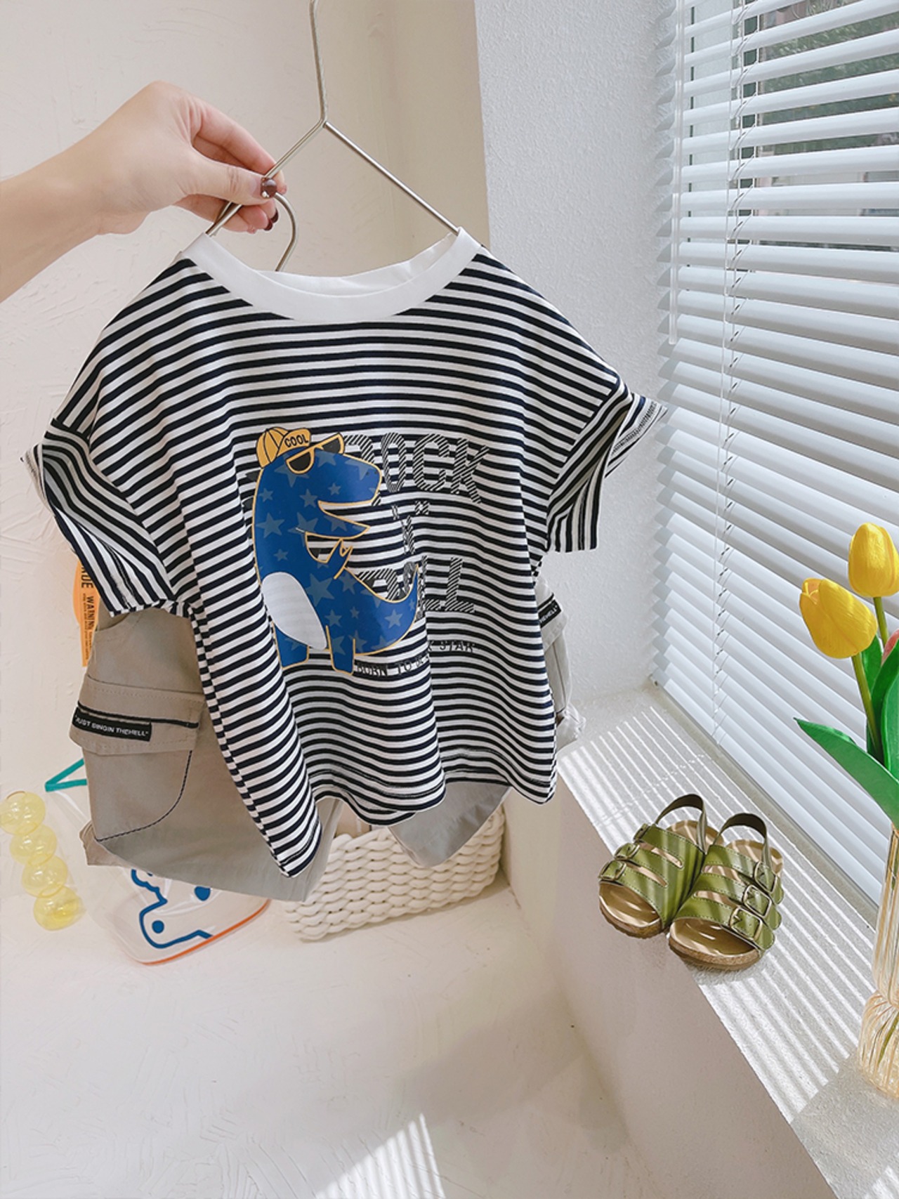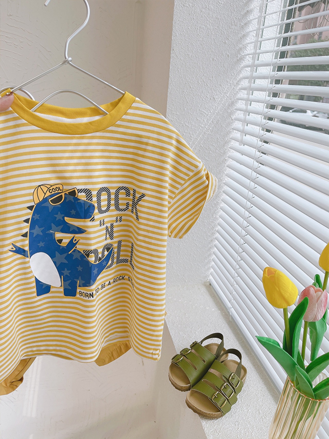 プリント柄ルーズストライプTシャツ スタイル コットン mi0665665442097