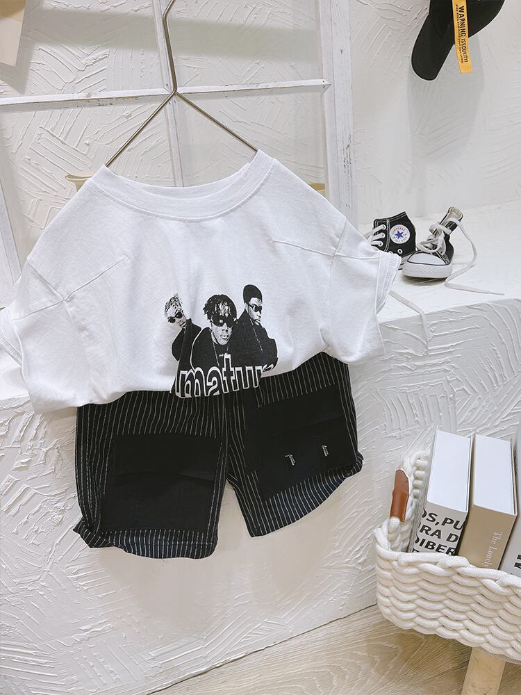スタイルプリント柄カジュアルラウンドネックプルオーバー ルーズホワイトTシャツ ストリート Oネック mi0651597566736