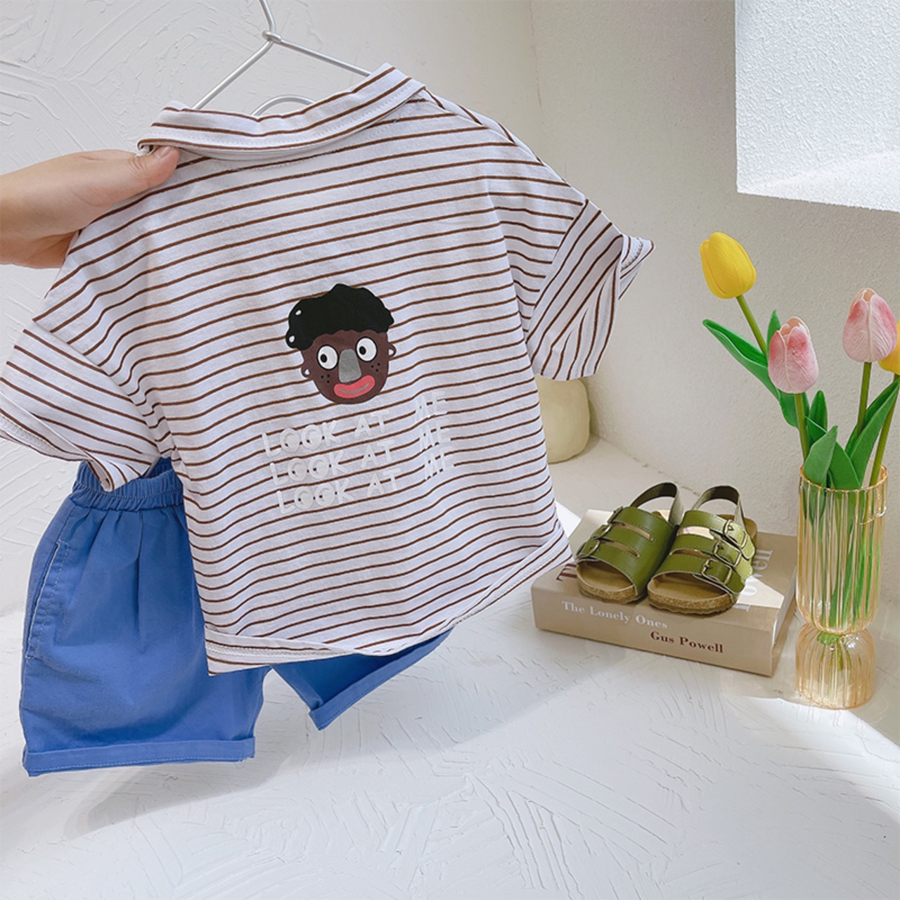ストライプスリーブシャツ 半袖 ハーフスリーブ mi0621000583715