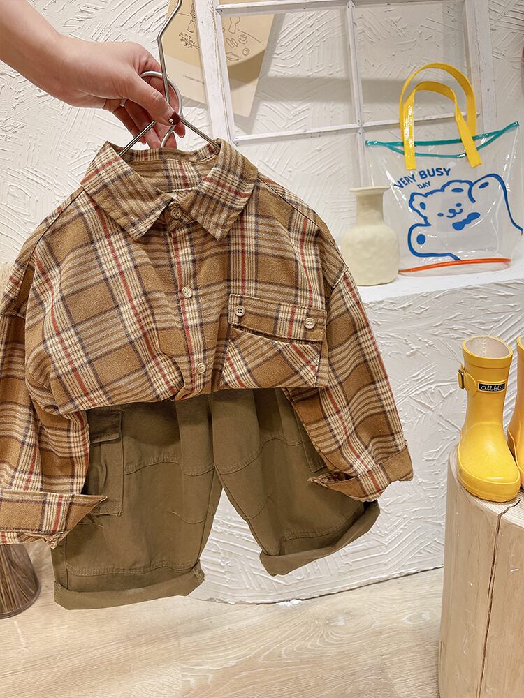 スタンダードスタイルルーズカジュアル格子柄シャツ コットン レトロ mi0677602966457