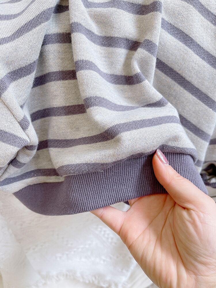 スプリングストライプセーター カジュアルトップス コットン 春物 mi0652951469749
