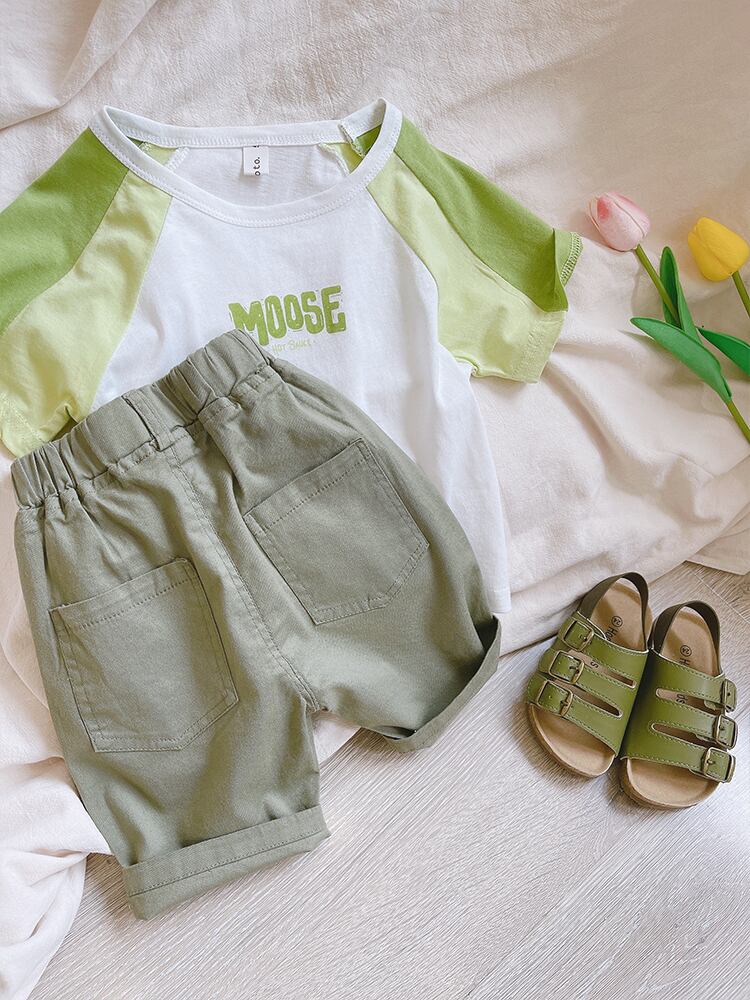サマーラウンドネックTシャツ パンツ 夏物 Oネック mi0624957411040