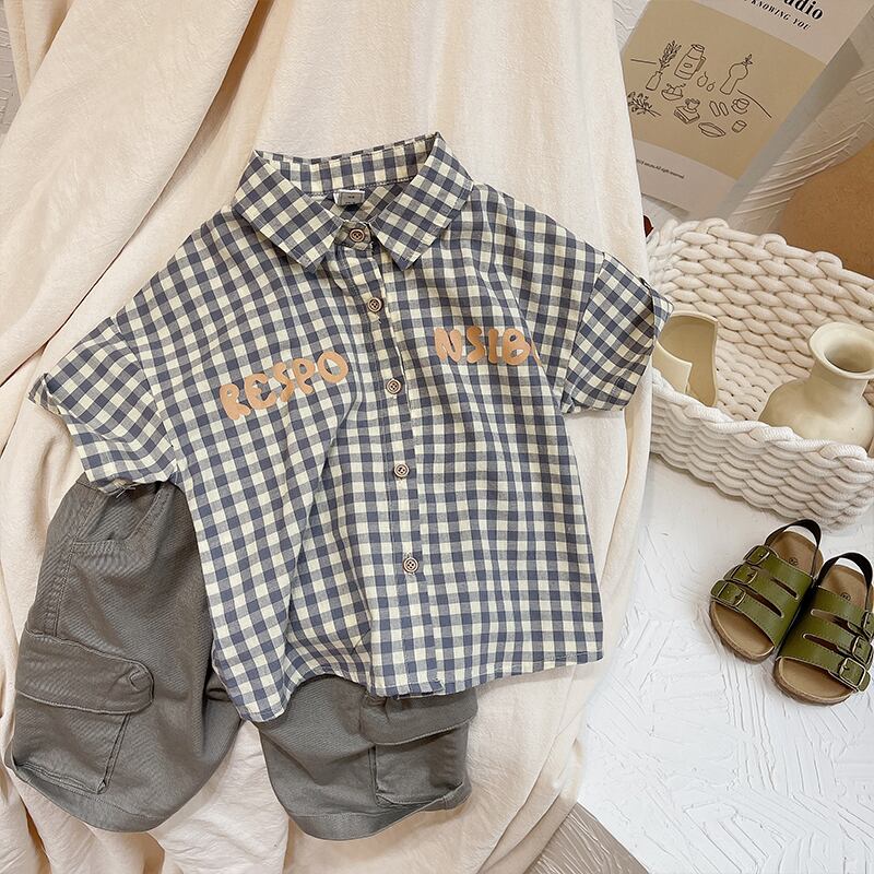サマー格子柄プリント柄半袖スリーブ ショート ハーフスリーブ 夏物 mi0631618695441
