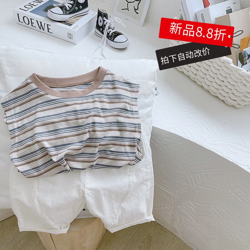 サマーストライプTシャツ カラーラウンドネックルーズプルオーバー 夏物 Oネック mi0682417205782