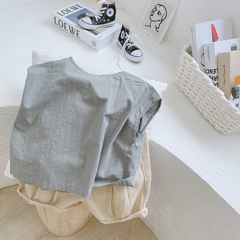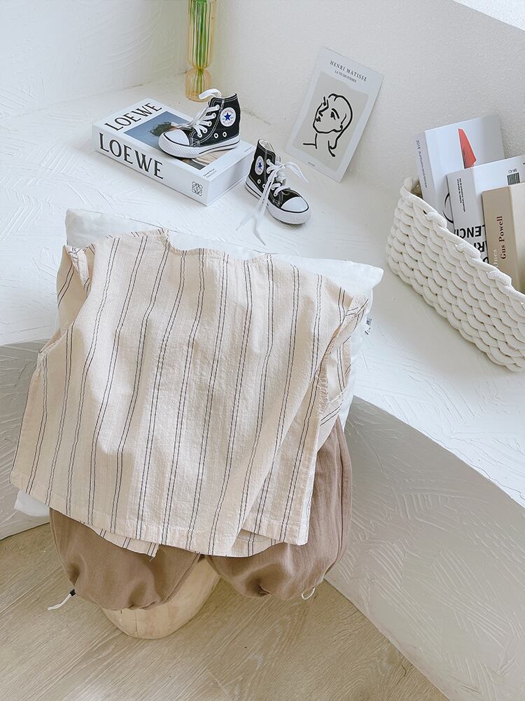 ストライプルーズノースリーブシャツ コットン mi0684018452640