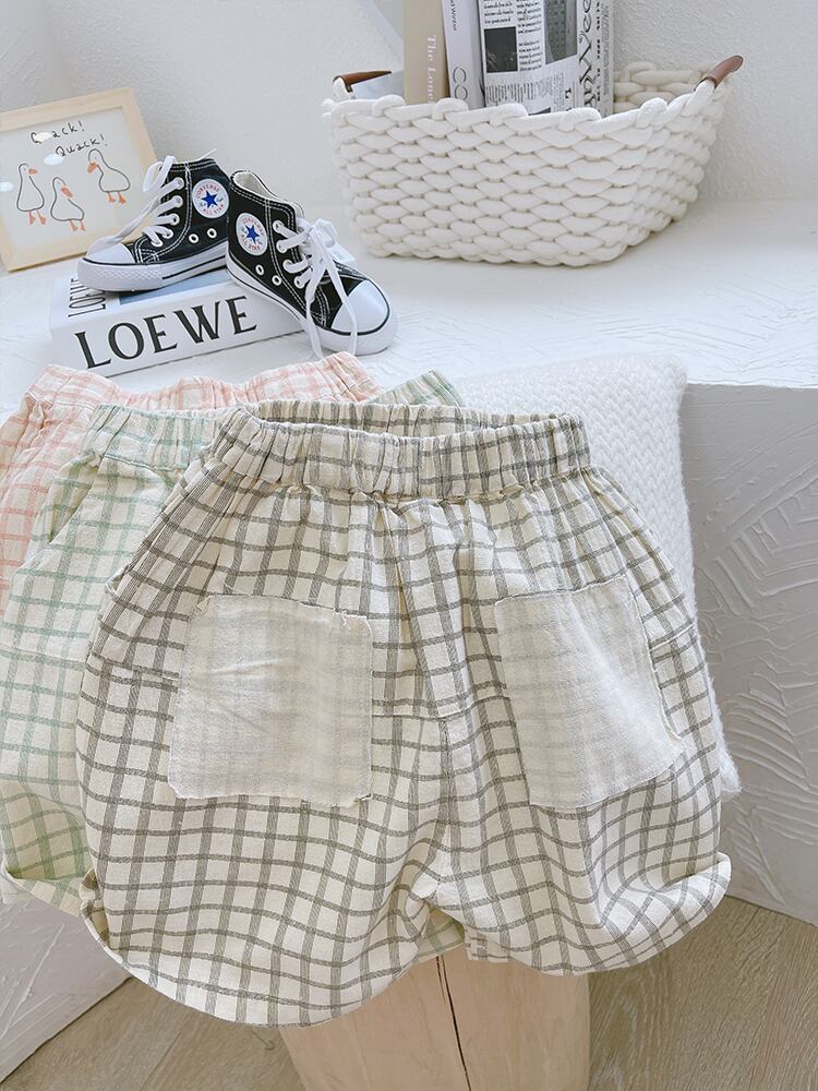 パンツ サマー格子柄 レッド コットン 夏物 ビーチ ショーツ ブルマー mi0696049106044