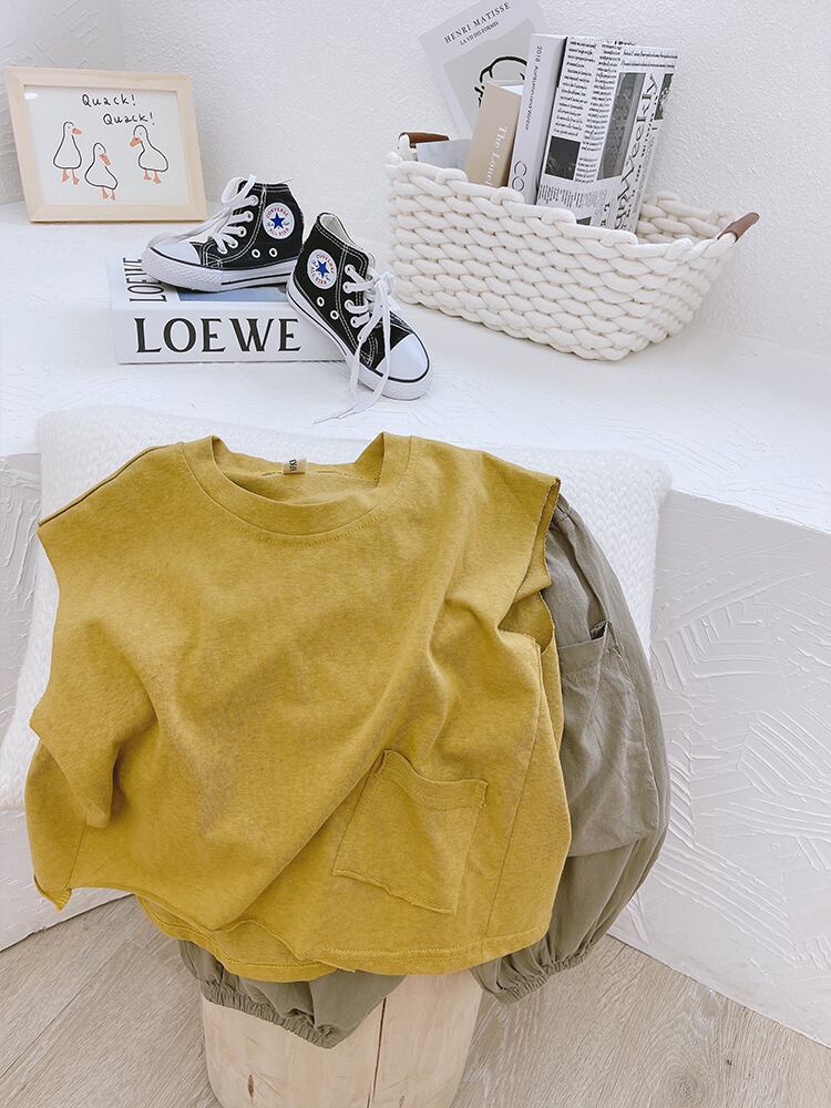 カラーサマー薄手ルーズラウンドネックノースリーブシャツ Tシャツ 夏物 Oネック ピュア mi0676098804674