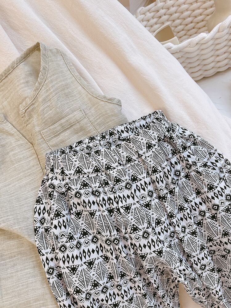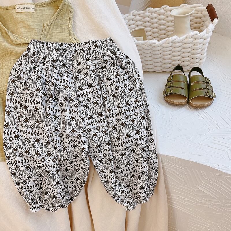スタンダードプリント柄クロップドルーズレギンス パンツ レトロ ショーツ ブルマー mi0666172658954