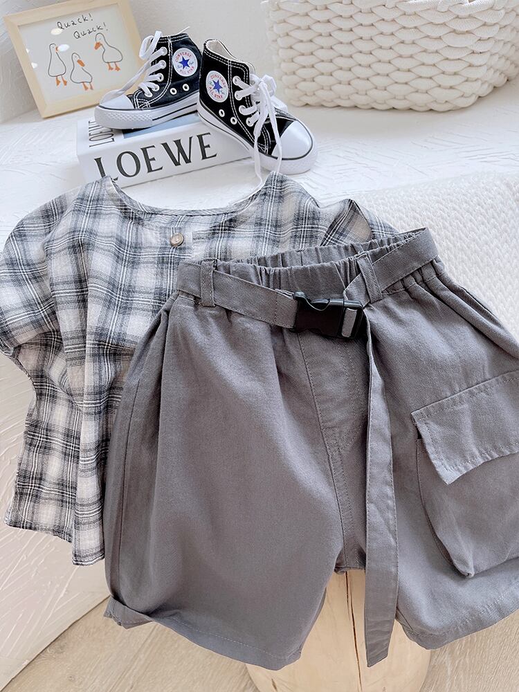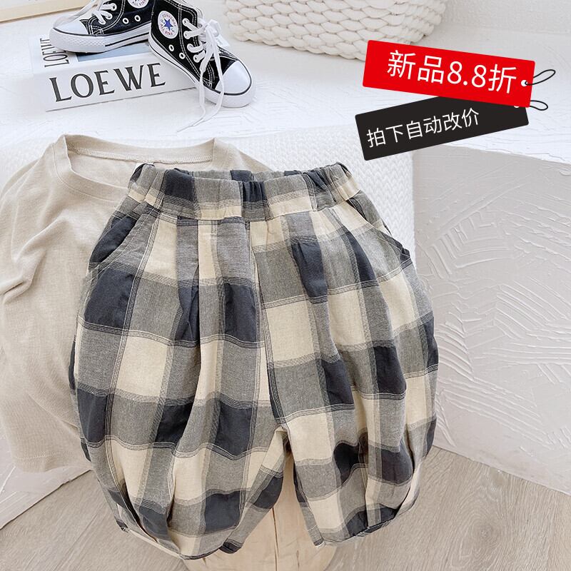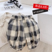 サマー格子柄カジュアルパンツ クロップド薄手 コットン 夏物 mi0613922000117