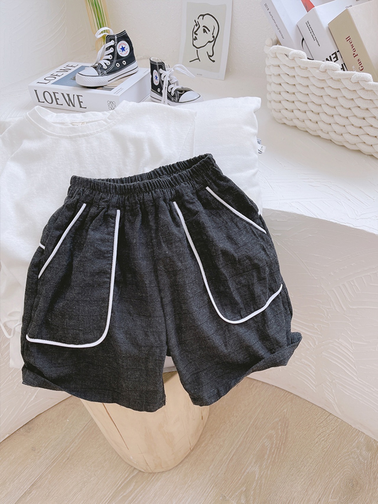 サマーブラックストライプルーズショーツ ストレッチウェストカジュアルパンツ 薄手 エラスティック 伸縮 夏物 ブルマー mi0675457375206