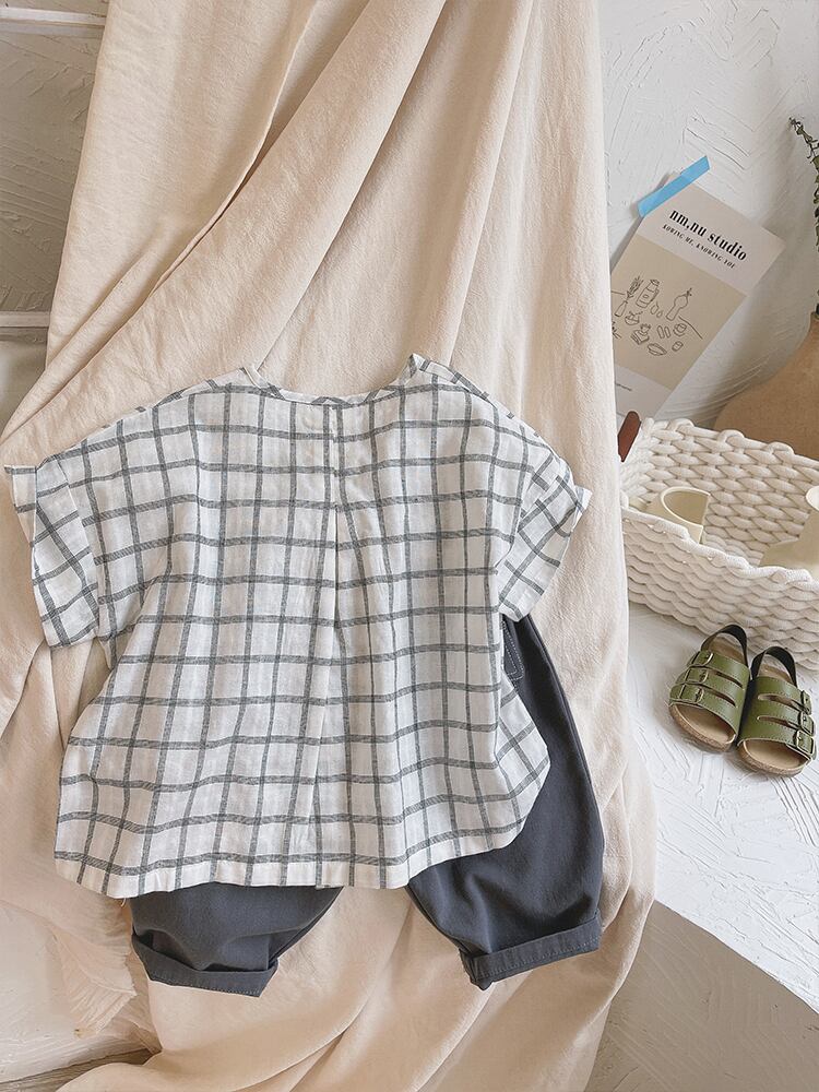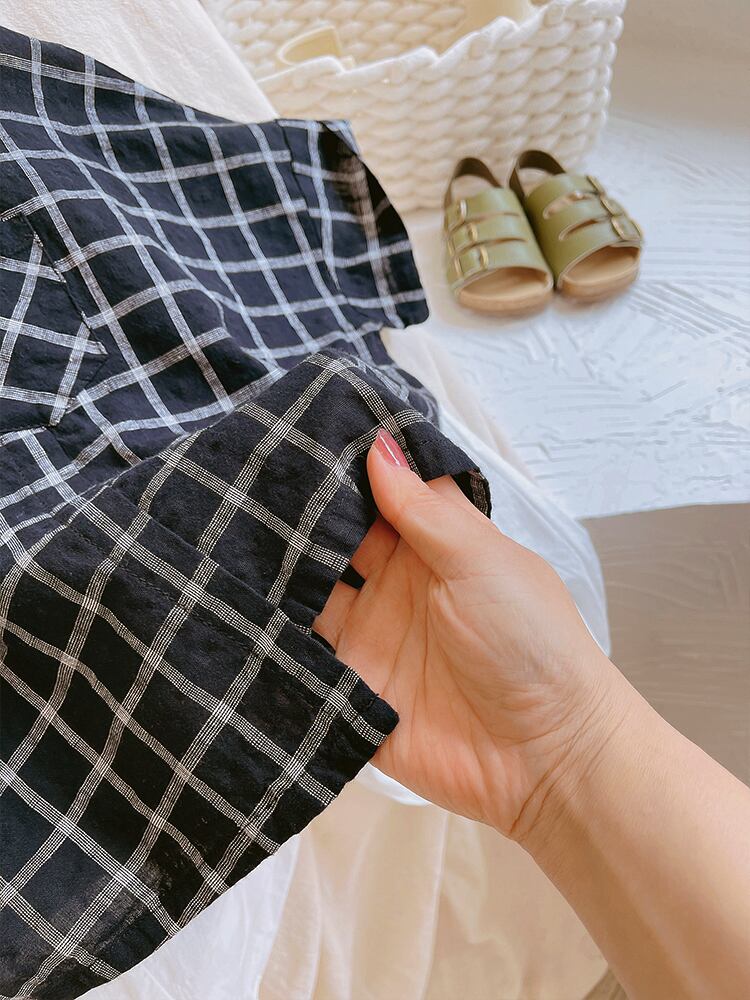ルーズシャツ 半袖スリーブサマー格子柄 ショート コットン ハーフスリーブ 夏物 mi0616911844158