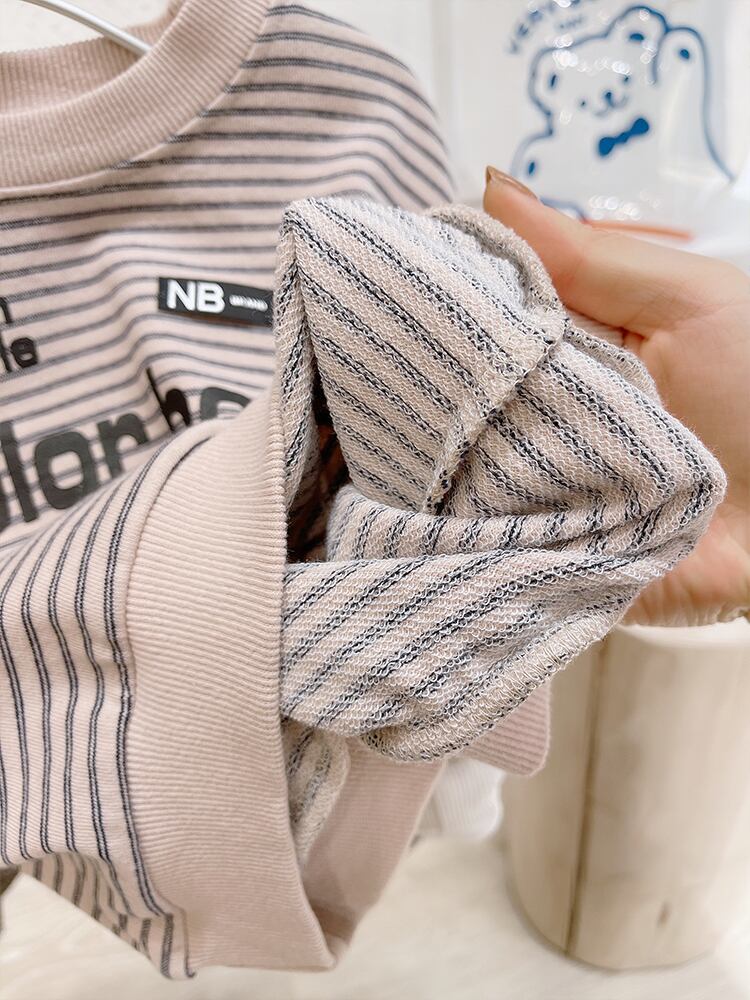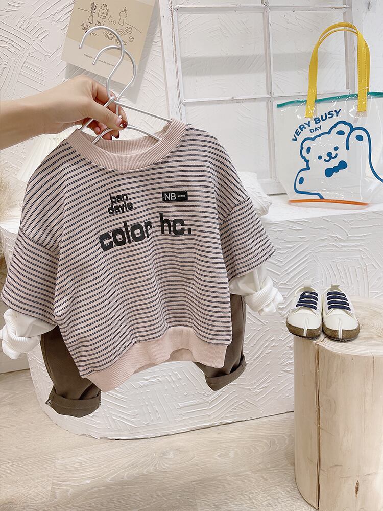 ストライプカジュアルラウンドネックシャツ スプリングブラウス 春物 Oネック mi0689820810313