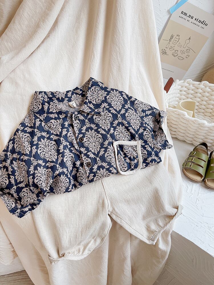 ルーズシャツ カラースタンダードプリント柄 コットン レトロ mi0670278323981