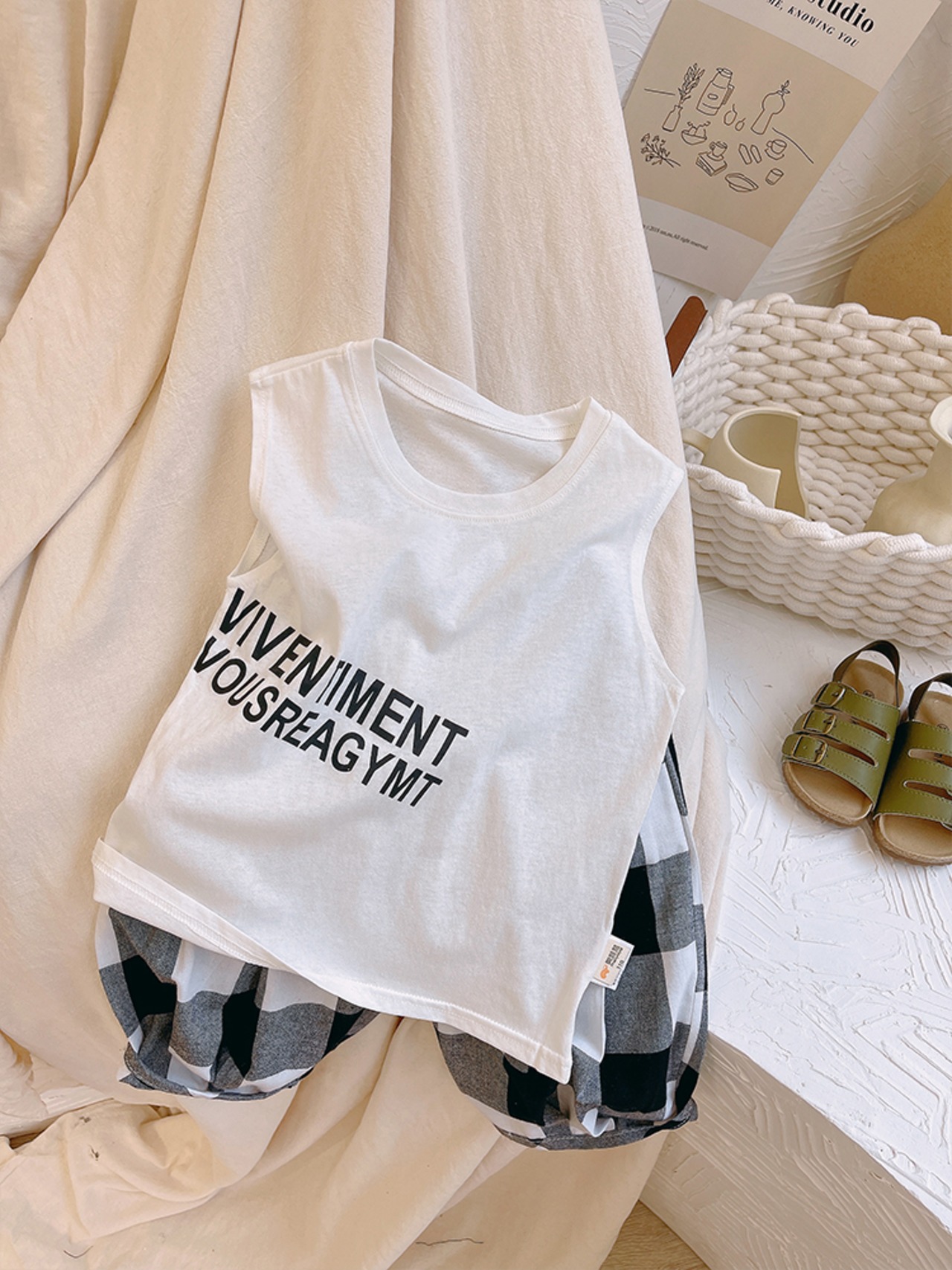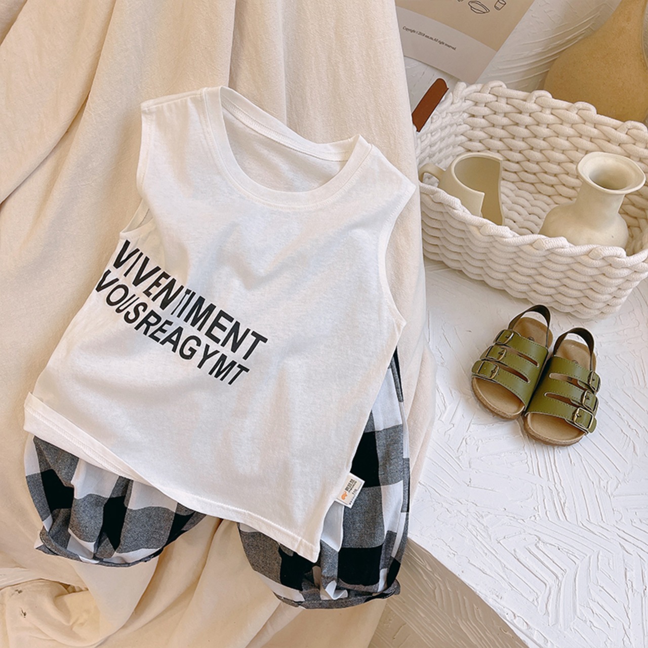 サマーノースリーブソリッド カラーTシャツ スウェット コットン 夏物 ソリッドカラー mi0630280271753