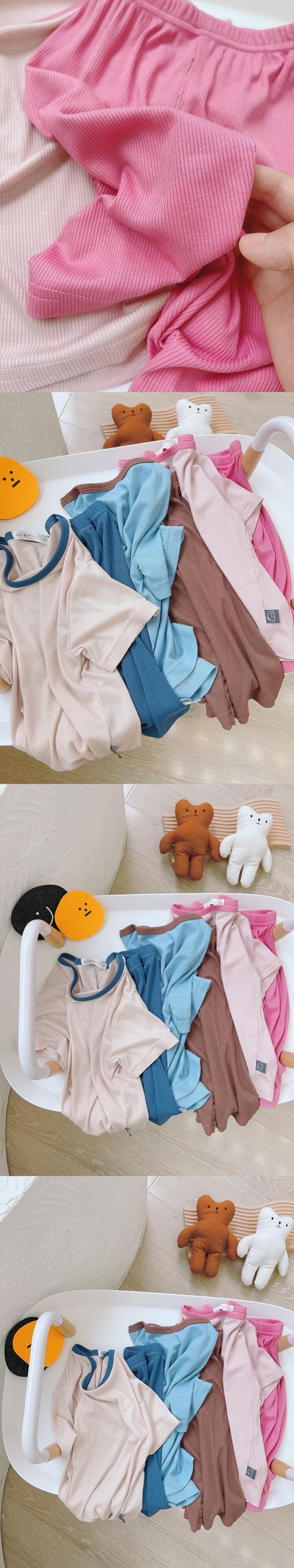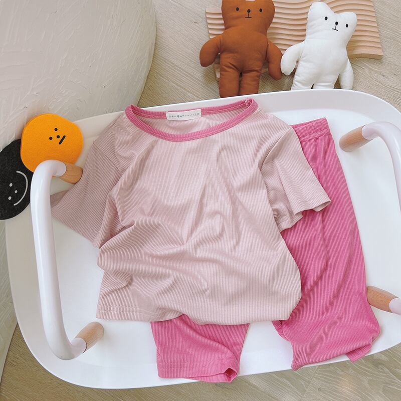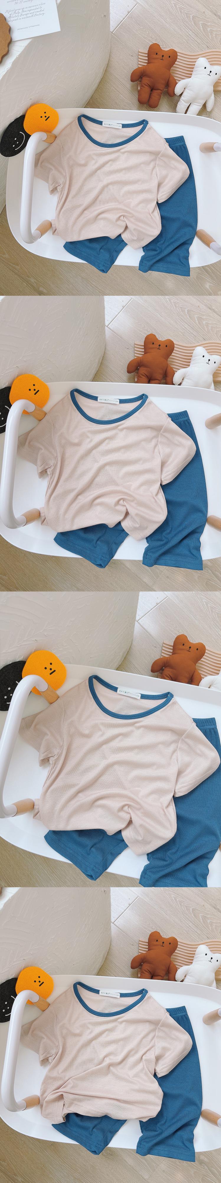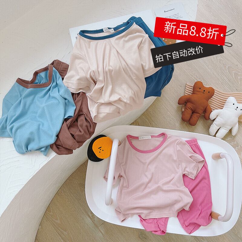 セット ブルーショーツ ルーズカラーラウンドネックTシャツ サマー コットン 夏物 ブルマー Oネック mi0655701094398