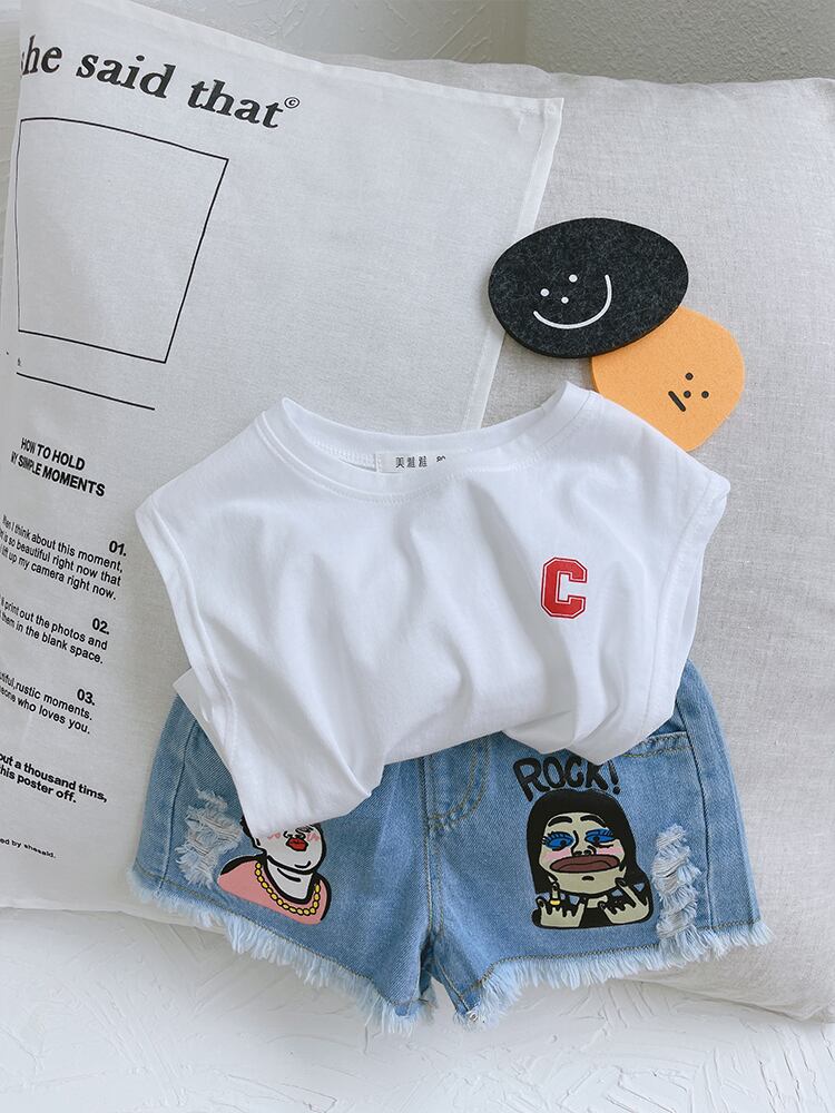 サマーホワイトプリント柄ジーンズ 夏物 mi0635402257770