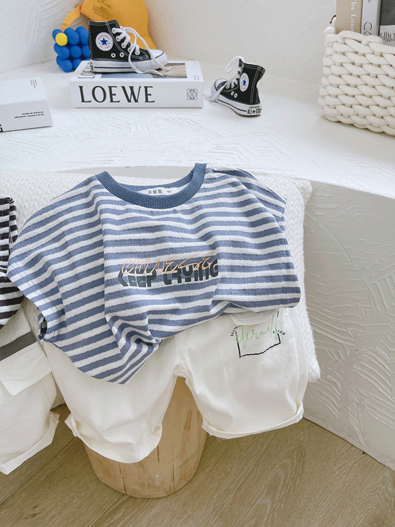 ストライプTシャツ スタイルジャケット カジュアルホワイトショーツ ブルマー mi0615424626664