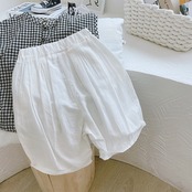 サマーホワイトカラーブラックルーズストレッチウェストクロップドパンツ エラスティック 伸縮 夏物 ショーツ ブルマー mi066077205570