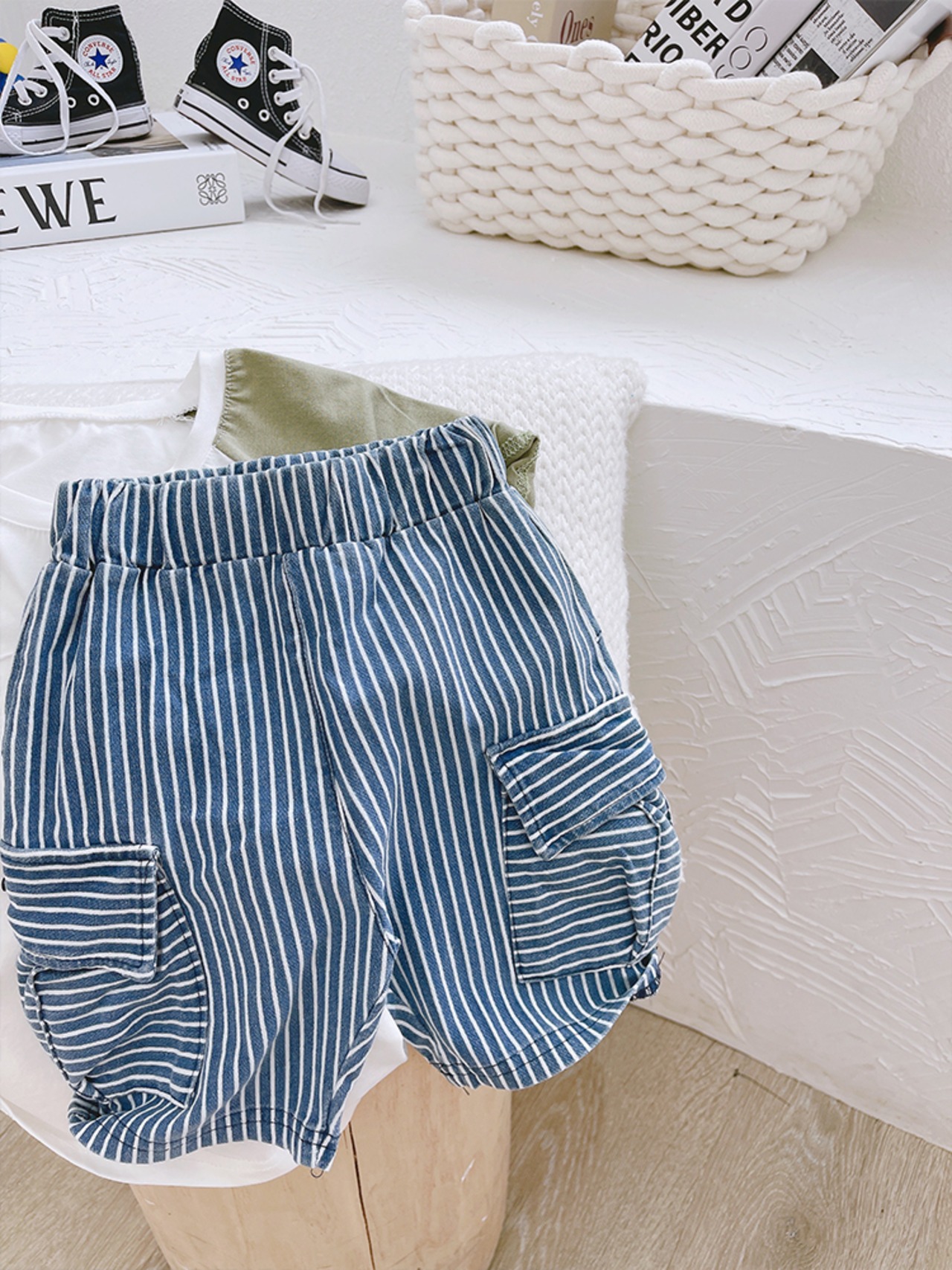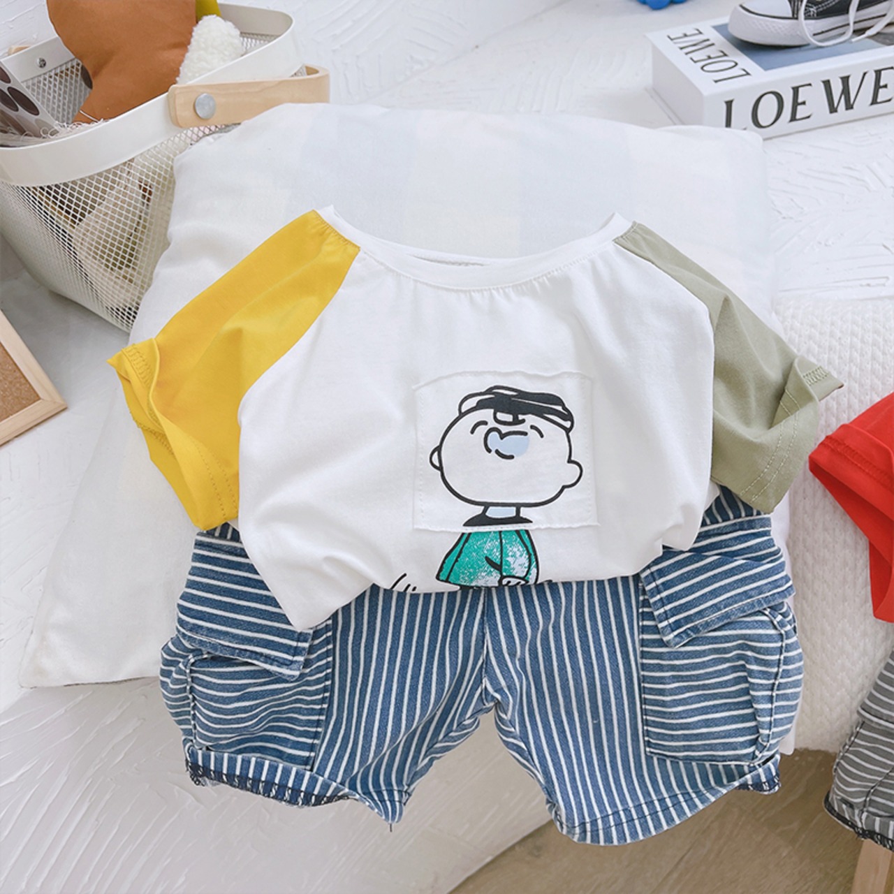 プリント柄カラースリーブTシャツ ストライプオーバーオール レディース mi0658075274831