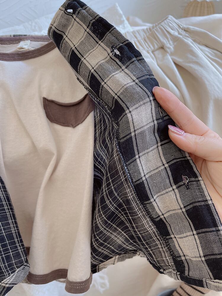 スタンダードスタイルダブルルーズ格子柄カーディガンジャケット スプリング コットン レトロ 春物 mi0625940027685