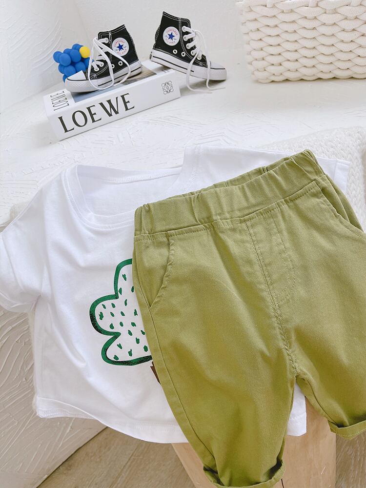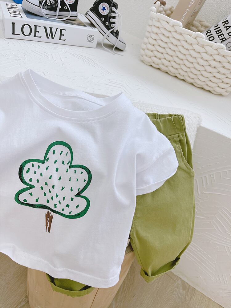 色:白い漫画の木+緑のズボン,ホワイトシャーク+グレーブラックパンツ