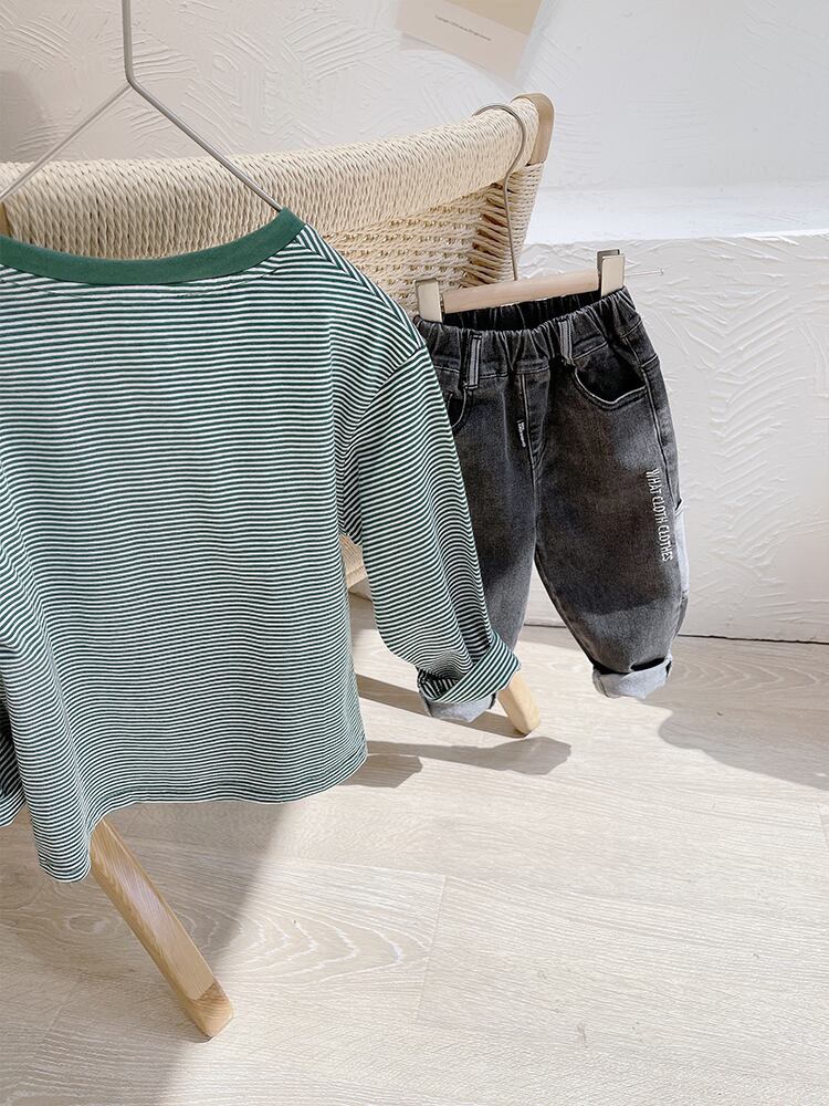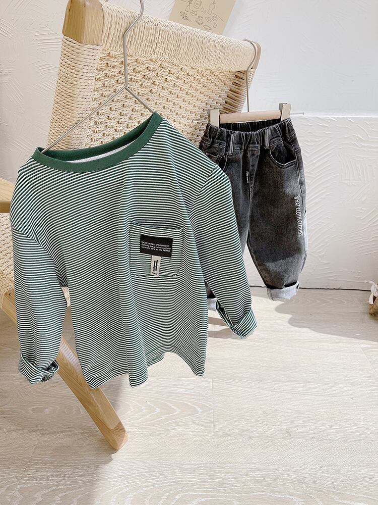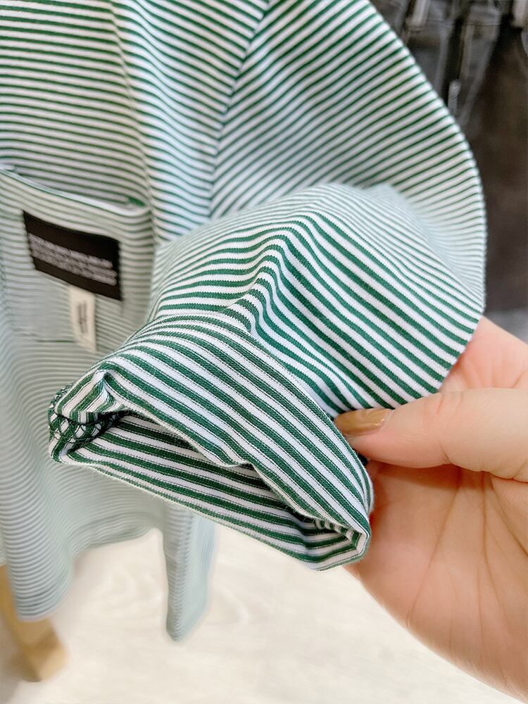 ベーシックカジュアルストライプシャツ トップス Tシャツ スプリング コットン 春物 mi0619171093966