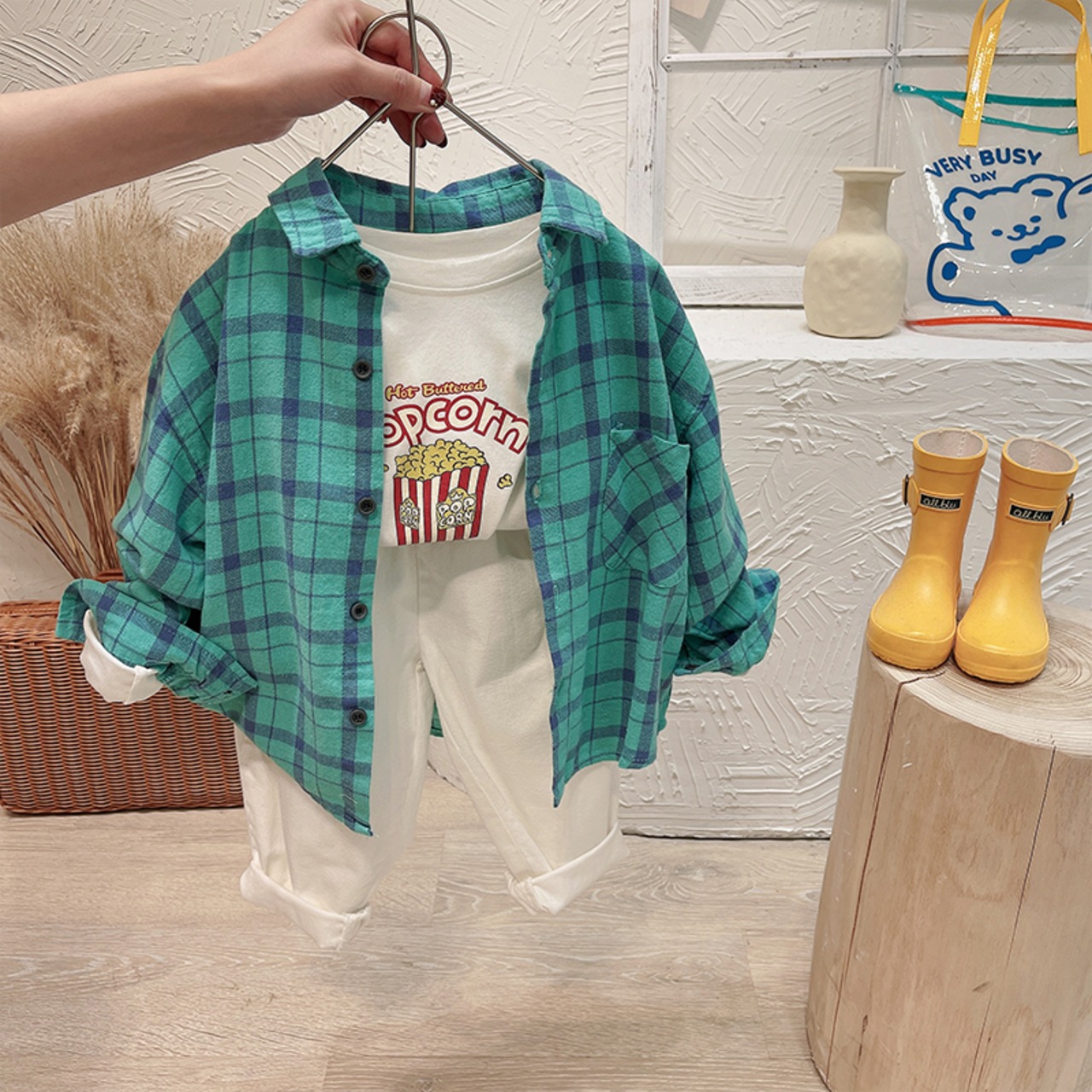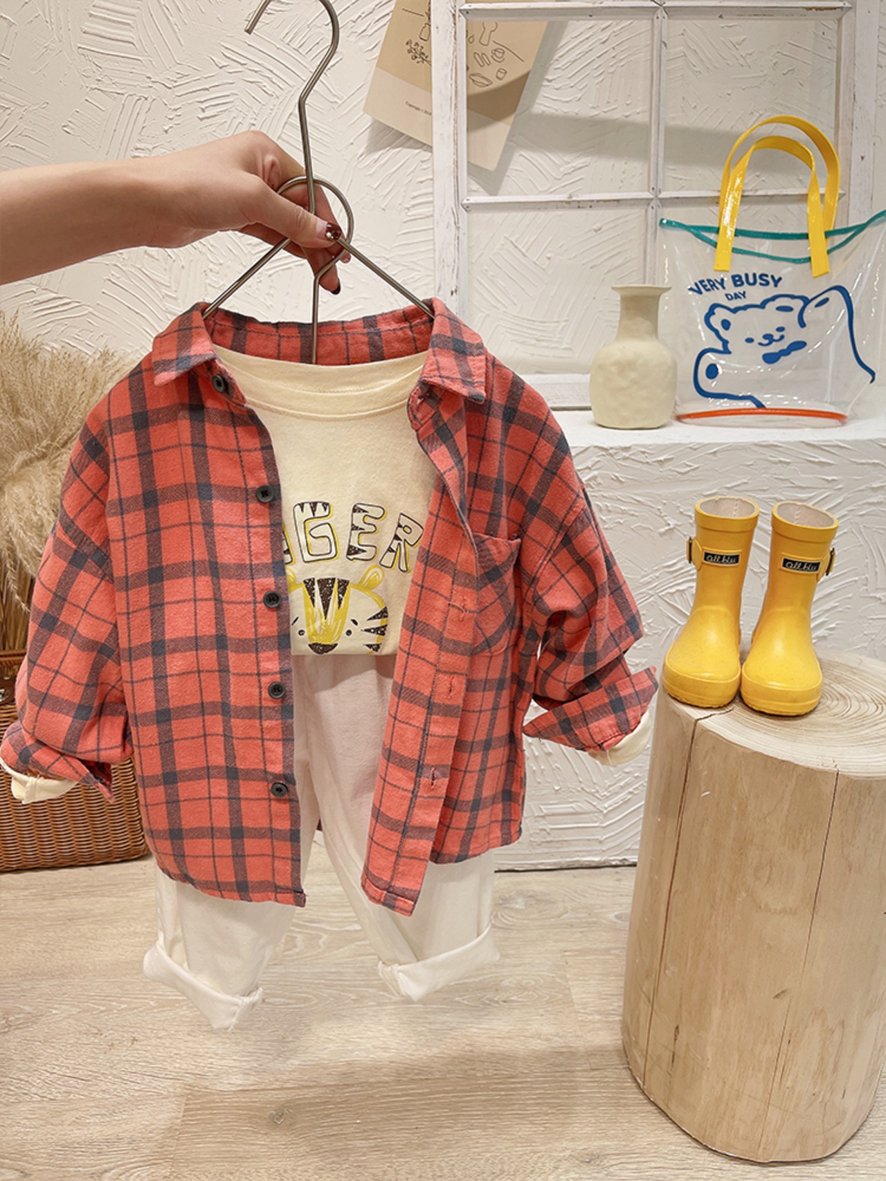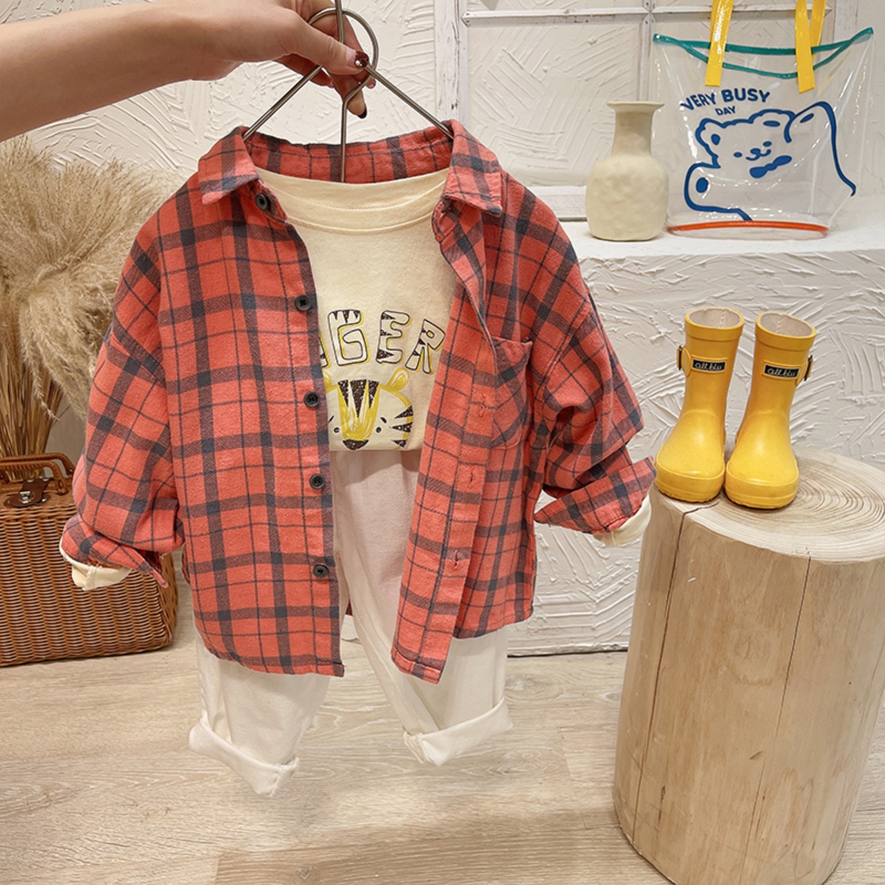 ルーズ格子柄シャツ ジャケット スプリングトップス 春物 mi0641206169114