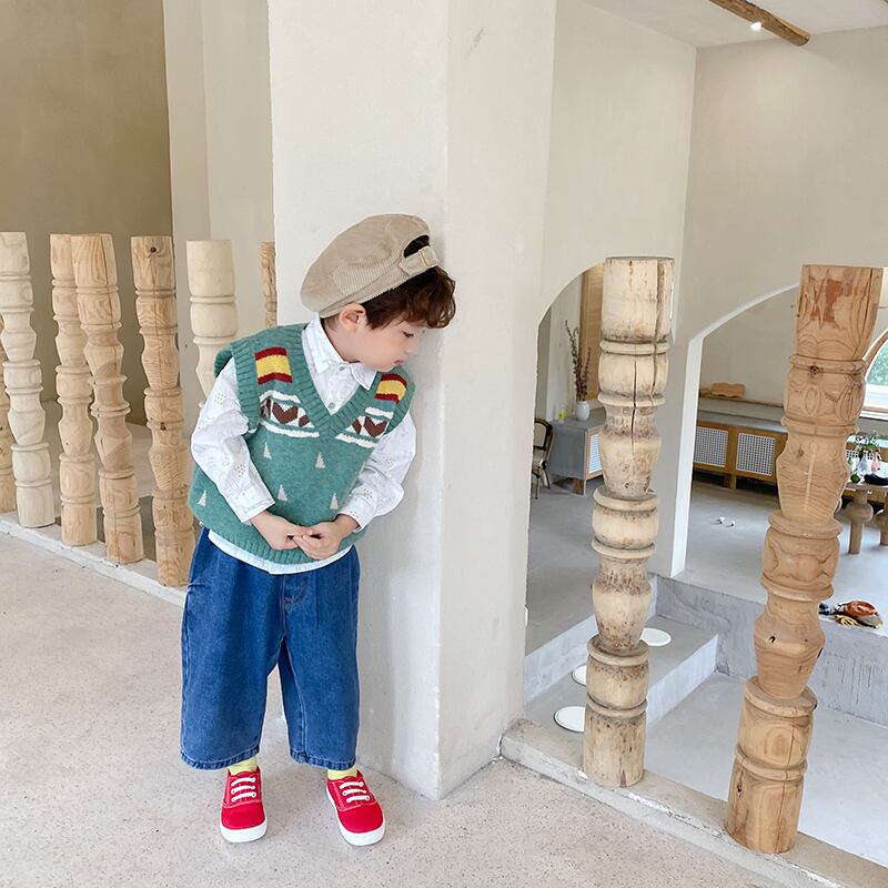 スプリングニットルーズセーター Vネックトップス 春物 キッズ mi0651307680188